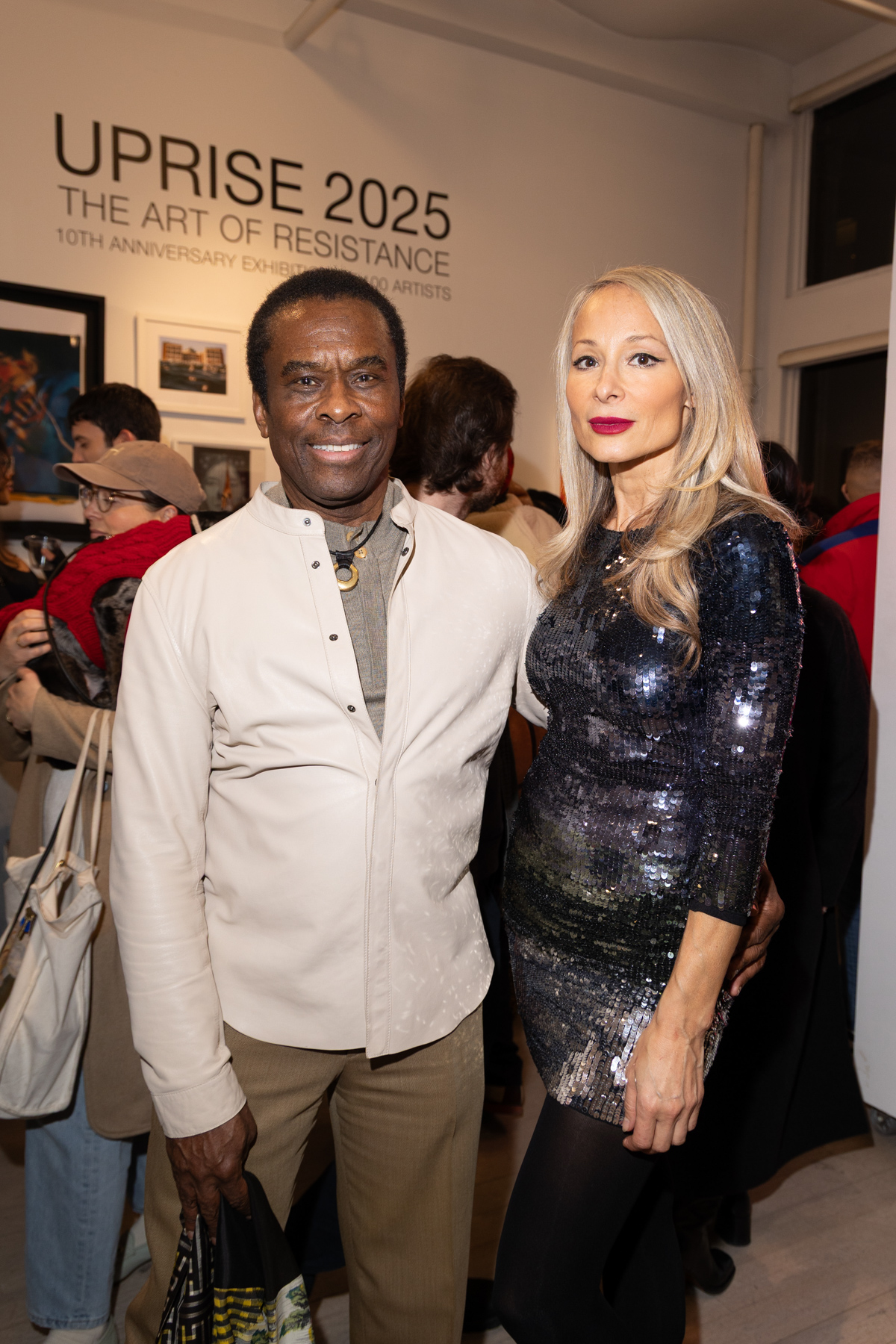 Richard Booth, Indira Cesarine and Guests attend "UPRISE 2025: The Art Of Resistance" 10th Annivesary Exhibit Reception, The Untitled Space gallery, March 8, 2025 (Photography by Patrick Cashin Design)
