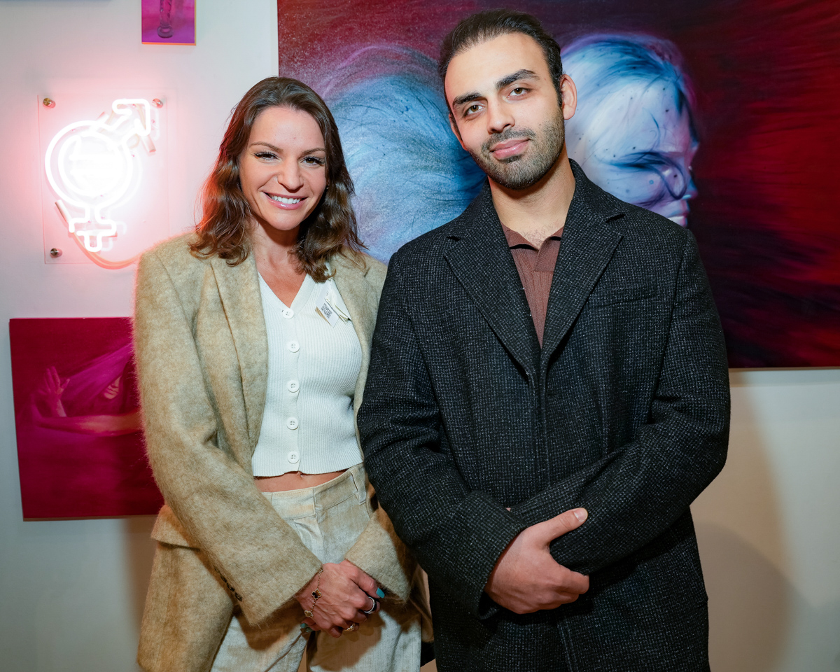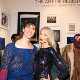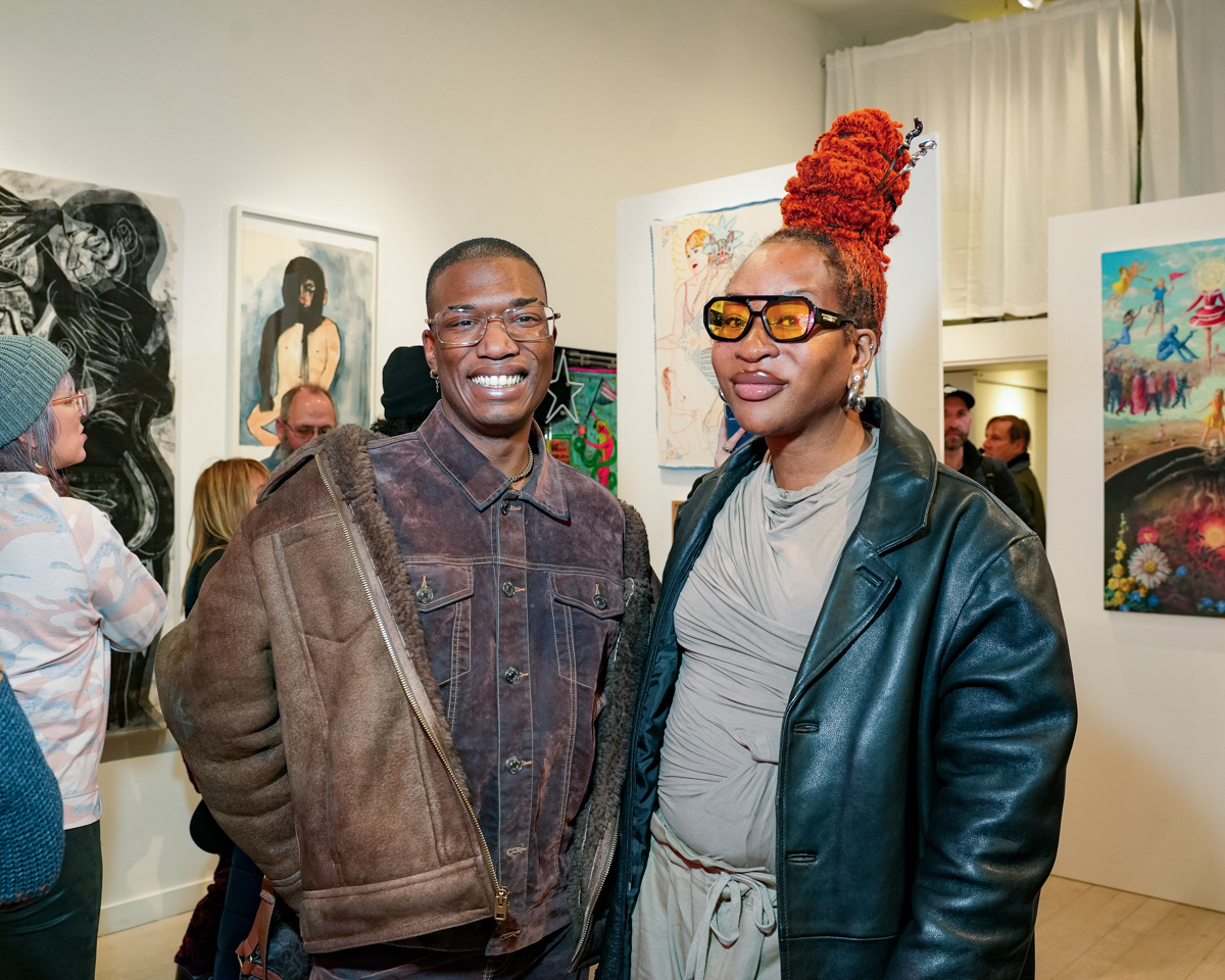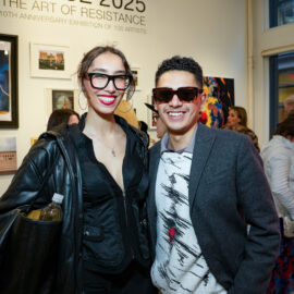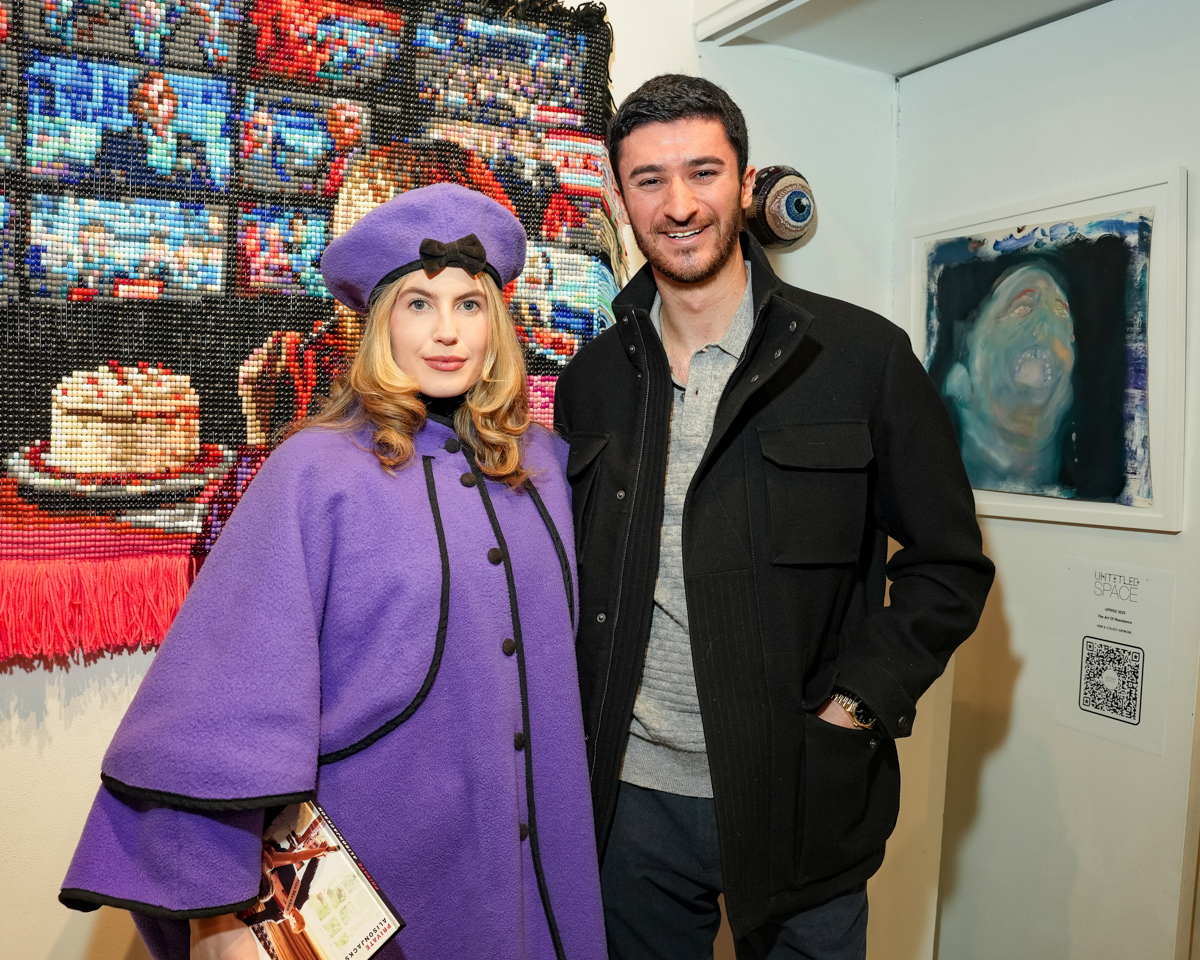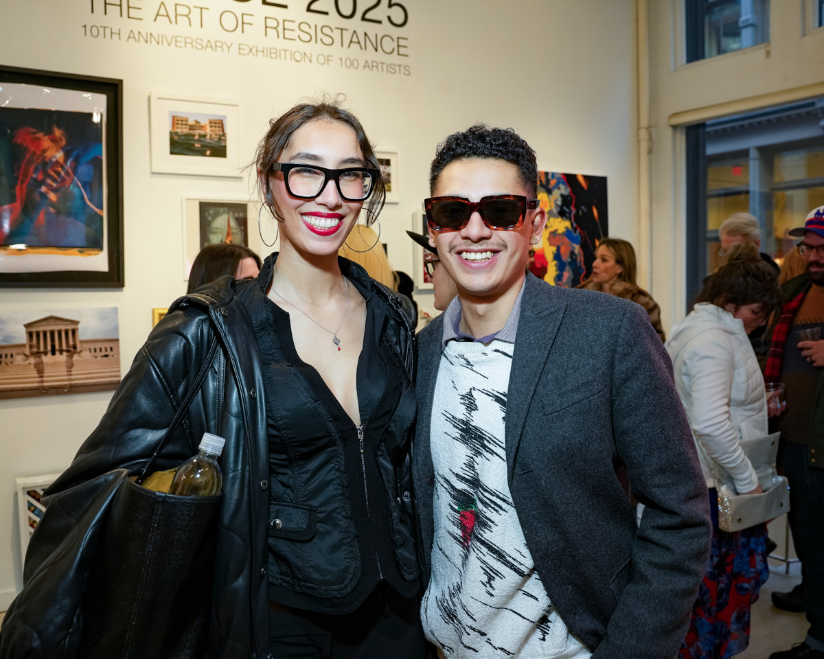 Kristopher Fraser and Indira Cesarine attend "UPRISE 2025: The Art Of Resistance" 10th Annivesary Exhibit Reception, The Untitled Space gallery, March 8, 2025 (Photography by Patrick Cashin Design)