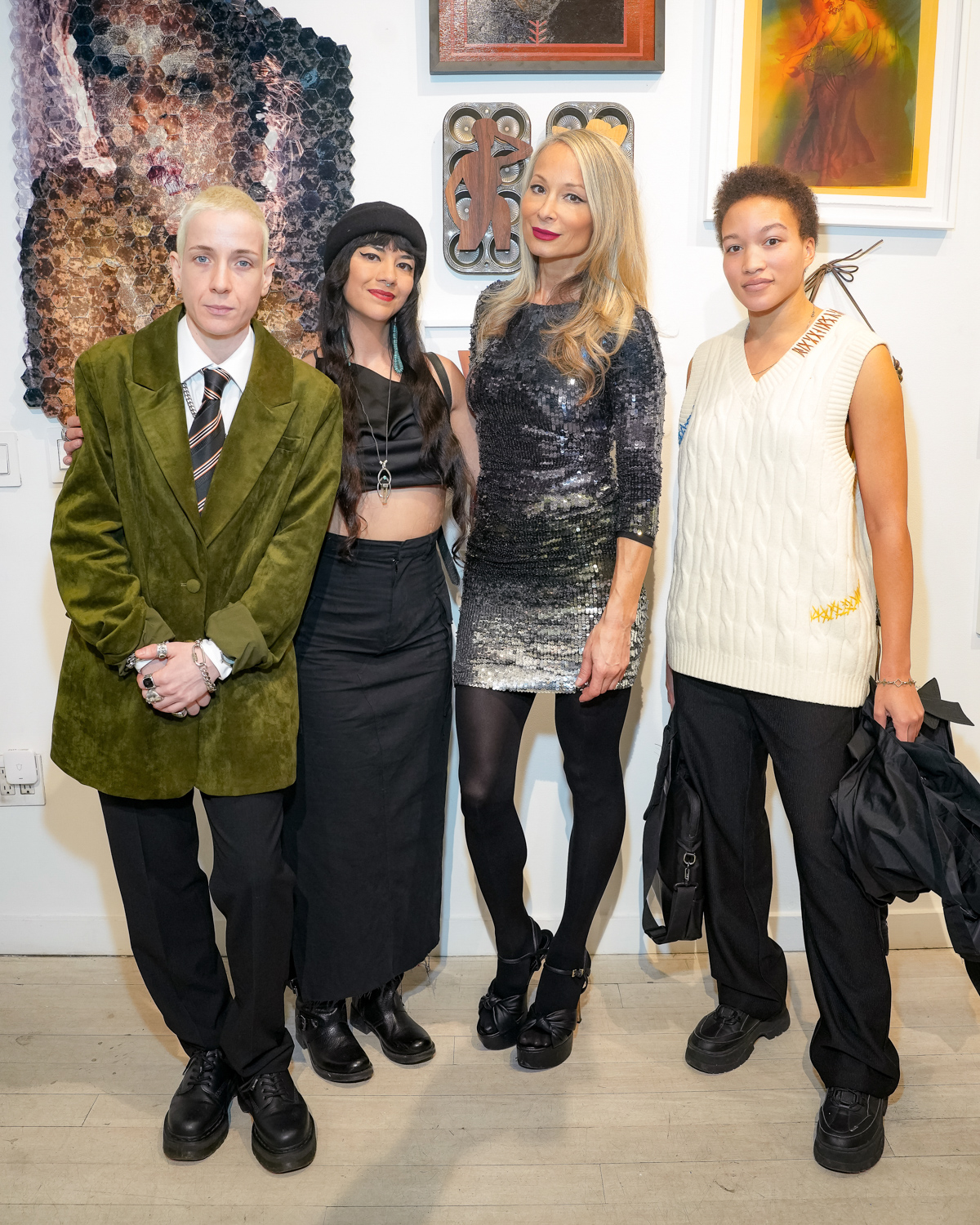 Lola Jiblazee, Jodie Herrera, Indira Cesarine, Asia Stewart, The Untitled Space’s 10th Anniversary Exhibition “Uprise 2025: The Art of Resistance” (Photography by Miguel McSongwe/BFA.com)