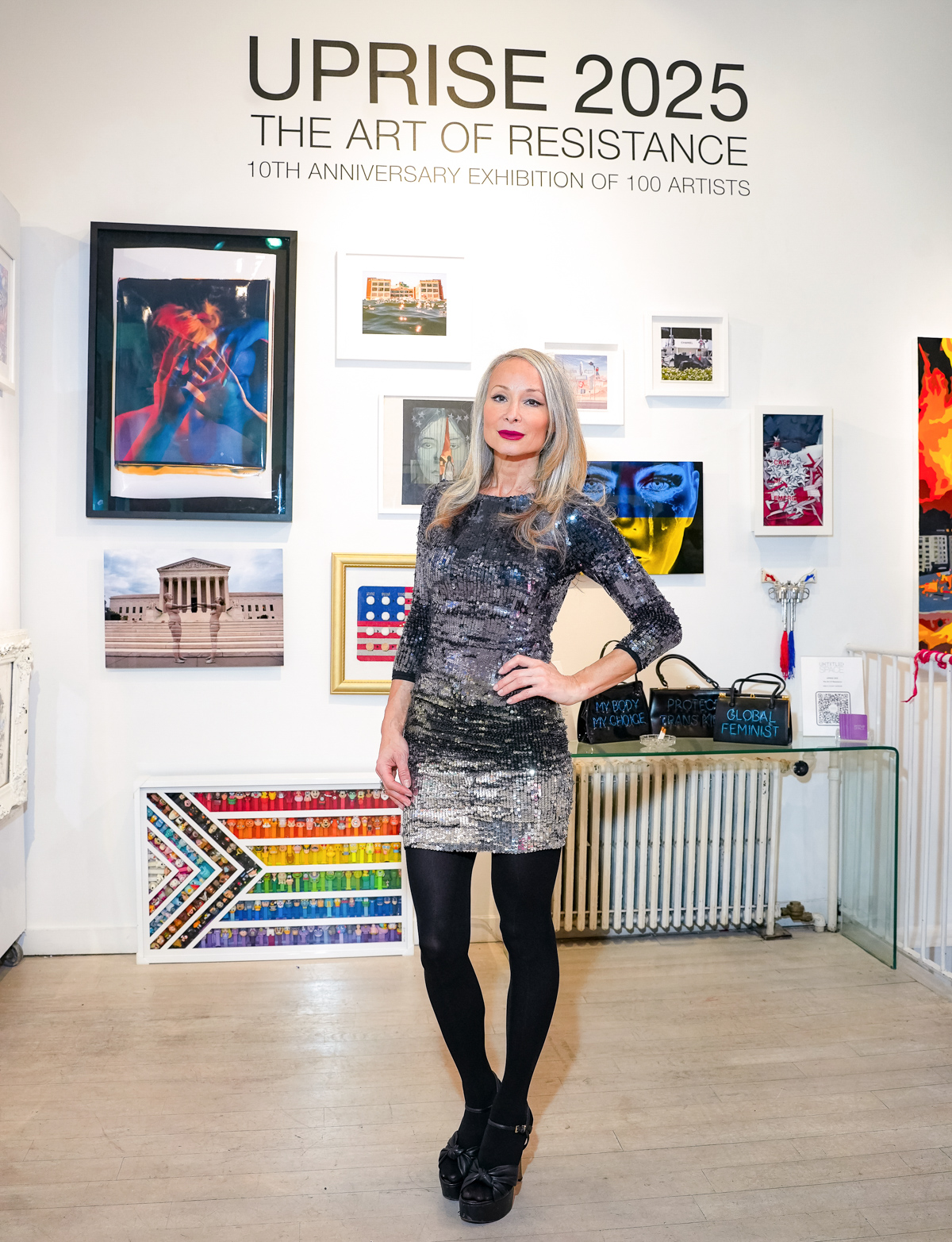 Elena Chestnykh attends "UPRISE 2025: The Art Of Resistance" 10th Annivesary Exhibit Reception, The Untitled Space gallery, March 8, 2025 (Photography by Patrick Cashin Design)