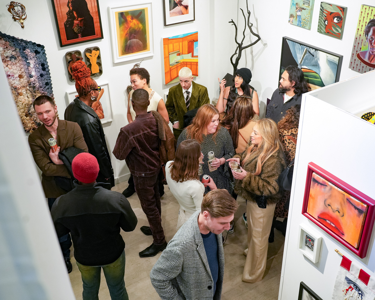 The gallery presented a VIP preview, followed by an opening reception, which saw many of the artists featured in the exhibition in attendance. Hosted by gallery founder Indira Cesarine, notable guests and artists in attendance included Alanna Vanacore, Alison Jackson, Andrew Soria, Anna Delvey, Annika Connor, Antonio Ferme, Ashley Barronette, Ashley Chew, Asia Stewart, Aubrié Costello, Avalon Ashley Bellos, Brana Dane, Brea Cubit, Brinton Brewster, Carla Sosenko, Chloe Youssef, Claudia Leung, Clay Lambert, Cole Witter, Dena Paige-Fischer, Desmond Sam, Diane Brill, Isabel Sierra Aka The Love Whip, Jasmine De Silva, Jeana Klein, Jodie Herrera, Julie Walker, Kafui Akakpo, Katie Cercone, Kristin O’Connor, Kristopher Fraser, Leo Braudy, Lola Jiblazee, Mary Tooley Parker, Michael Rose, Nurit Schwartz, Omar Hernandez, Ramses Rubio, Rebecca Batz, Richard Booth, Samara Bliss, Sunday Olaniyi, Tinu Naija, Tony Jones, Trinity Yvette, Ty-Ron Mayes, and Victoria Selbach.