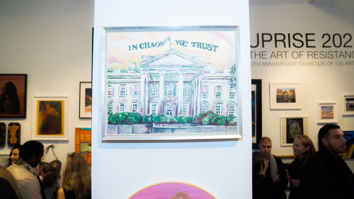 In celebration of The Untitled Space’s10th anniversary, the Tribeca gallery opened “UPRISE 2025: The Art of Resistance” a group show curated by gallery founder Indira Cesarine. One hundred artists joined forces for this landmark exhibition, which opened on March 8th in honor of International Women’s Day, and is on view through March 2025 for Women’s History Month, celebrating a decade of art, activism, and unwavering resistance at The Untitled Space.