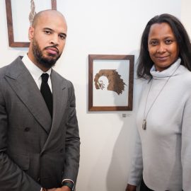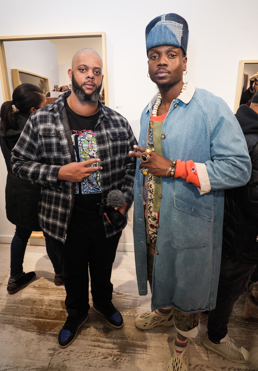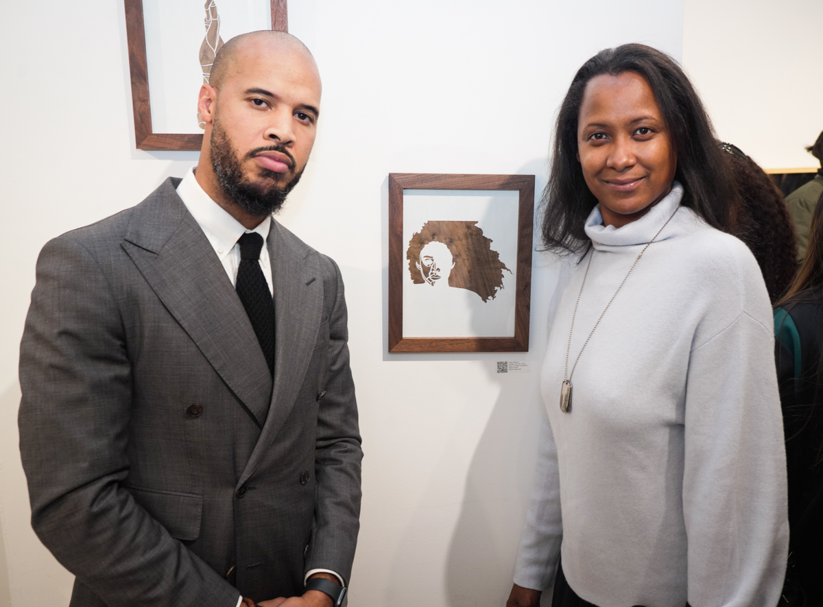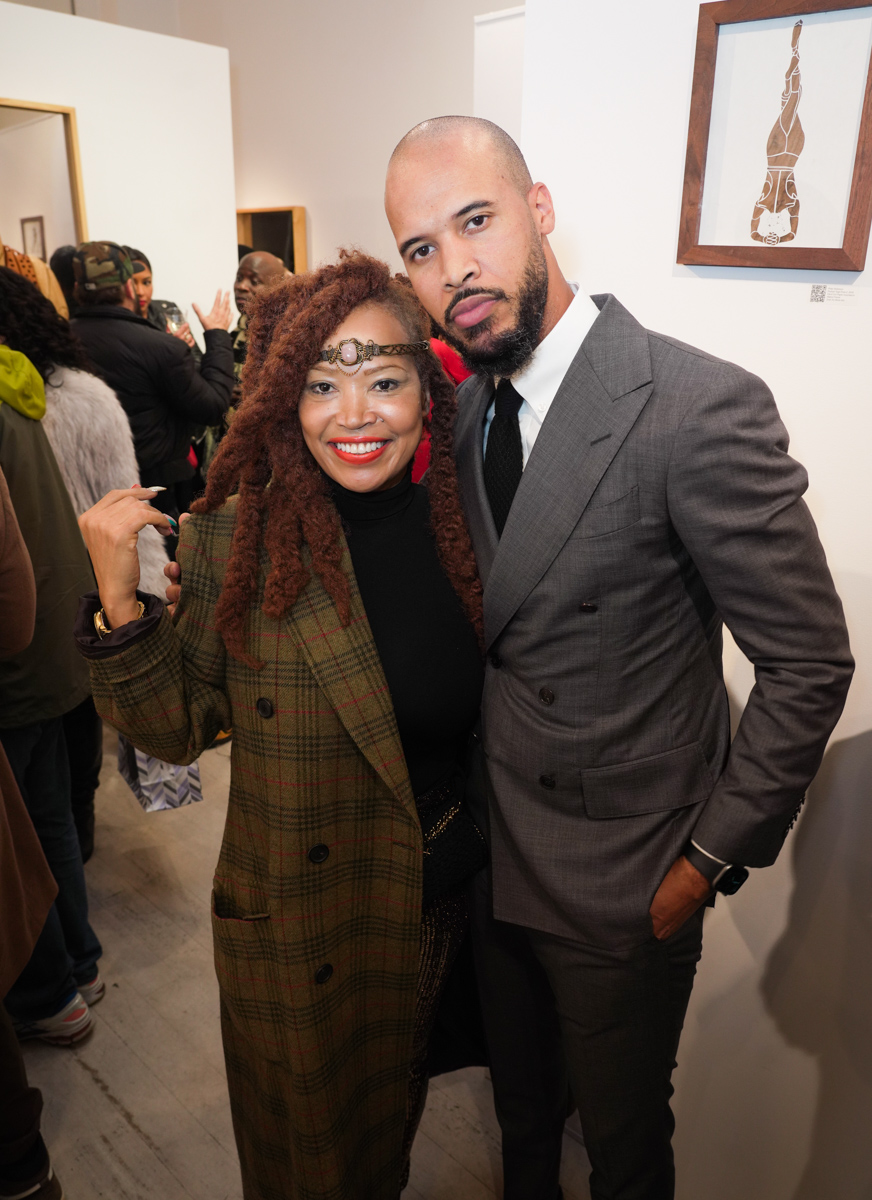 Philip A. Robinson Jr. and Kendal Henry at the Philip A. Robinson Jr. "Old Talks with New Icons" Exhibit Opening Reception, November 20, 2021, The Untitled Space, Tribeca, NY