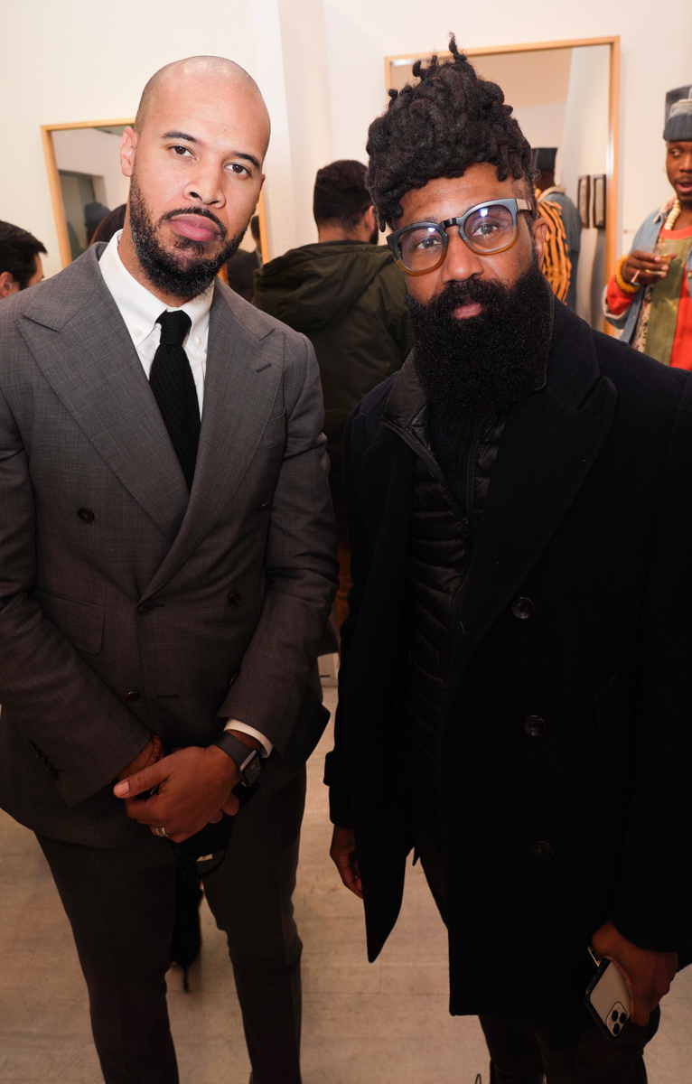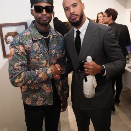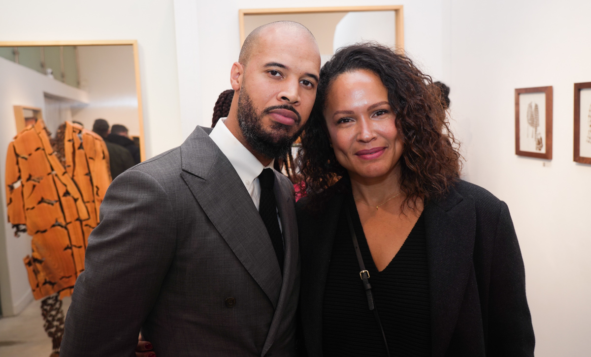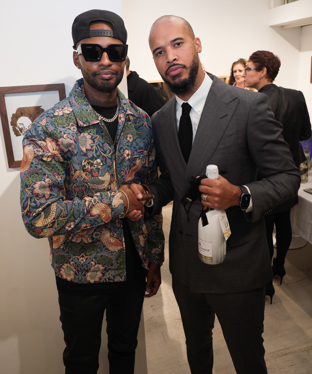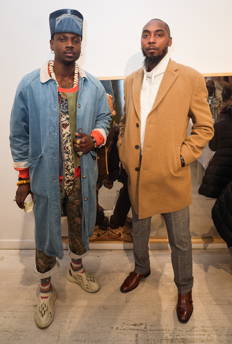 Philip A. Robinson Jr. and Kendal Henry at the Philip A. Robinson Jr. "Old Talks with New Icons" Exhibit Opening Reception, November 20, 2021, The Untitled Space, Tribeca, NY
