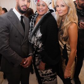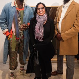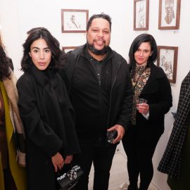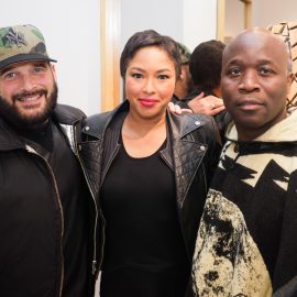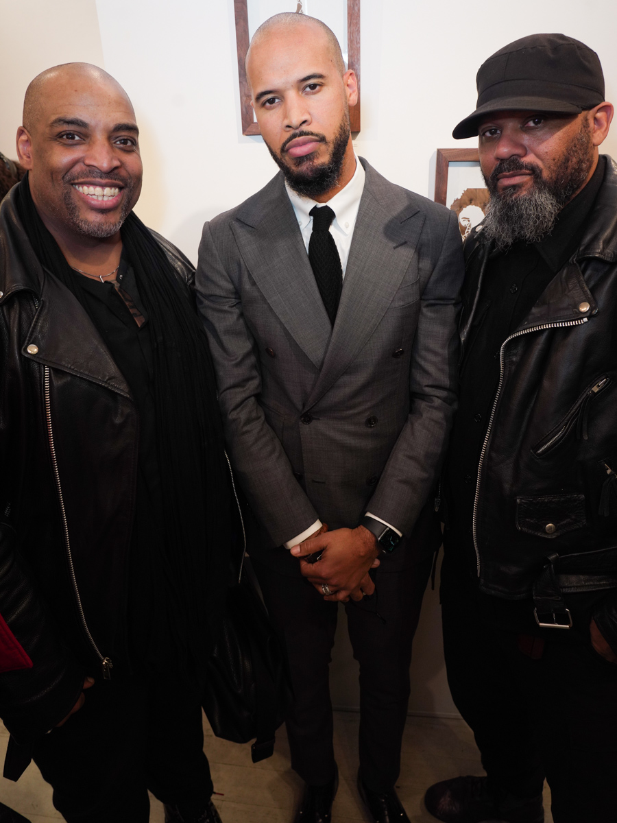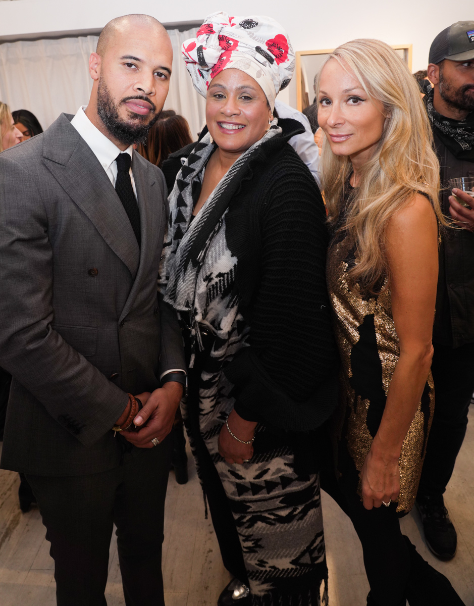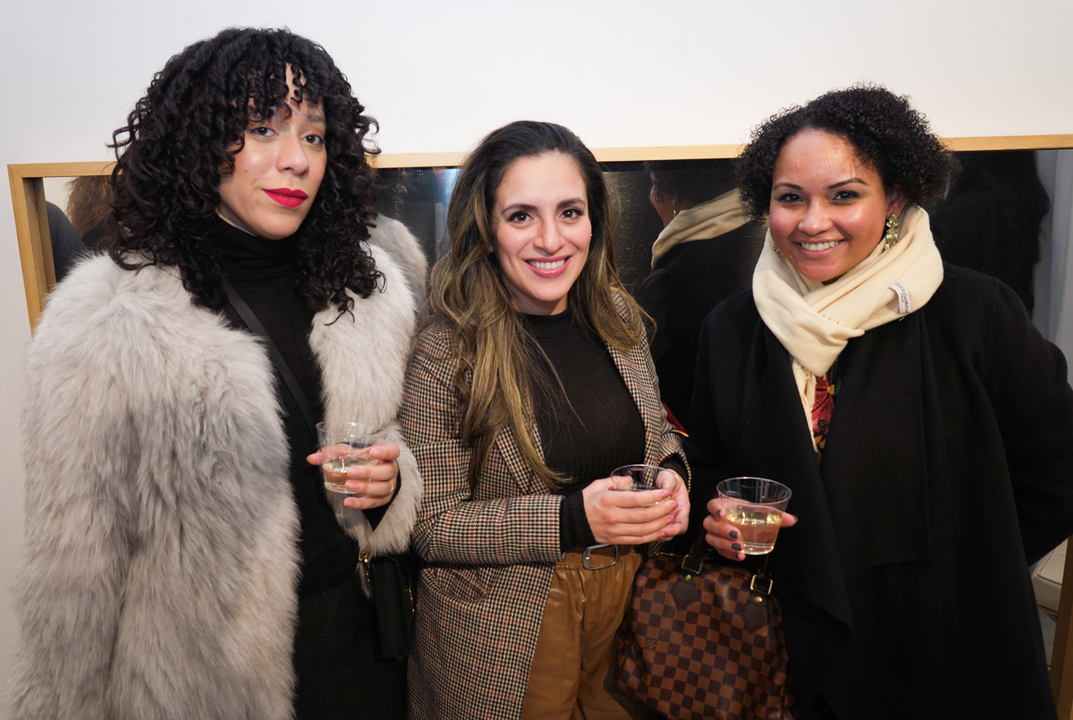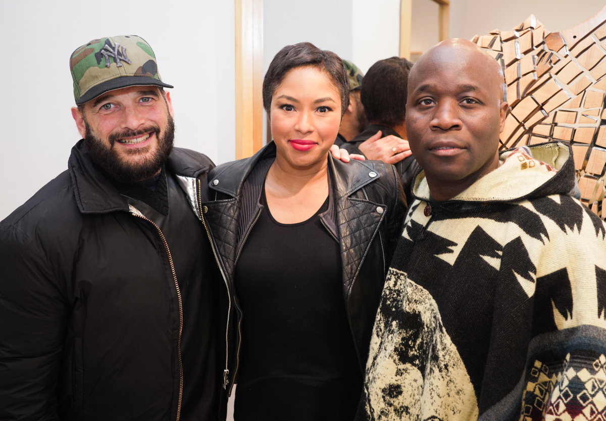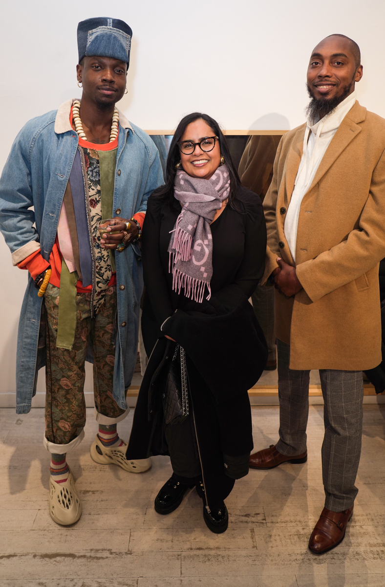 Kristen Walker, Oliver Smiles and Indira Cesarine at the Philip A. Robinson Jr. "Old Talks with New Icons" Exhibit Opening Reception, November 20, 2021, The Untitled Space, Tribeca, NY