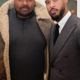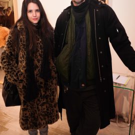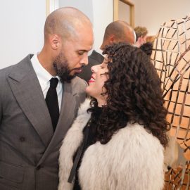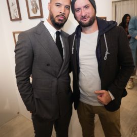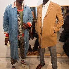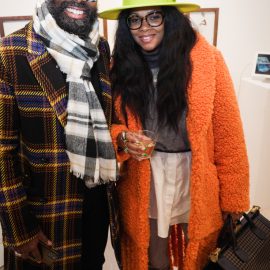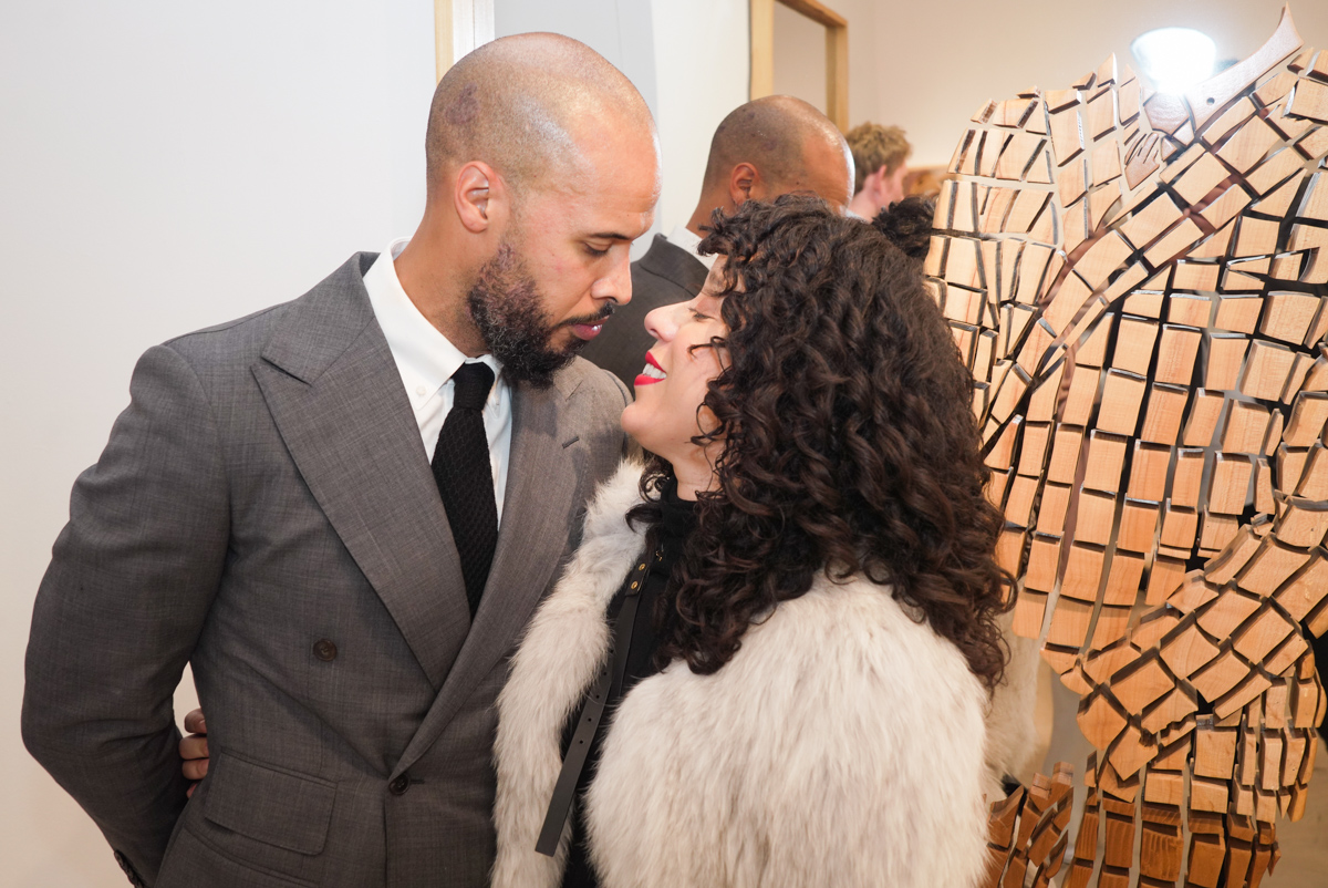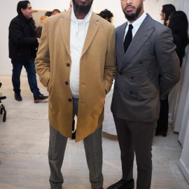 Patrick Anderson and guest at the Philip A. Robinson Jr. "Old Talks with New Icons" Exhibit Opening Reception, November 20, 2021, The Untitled Space, Tribeca, NY