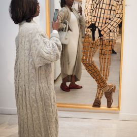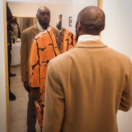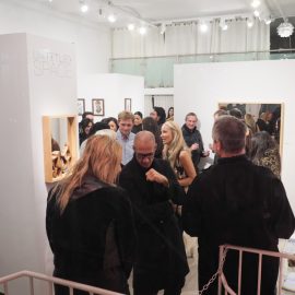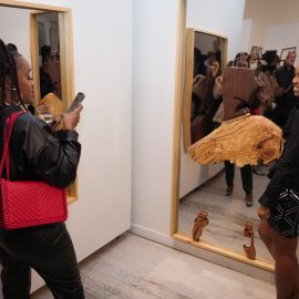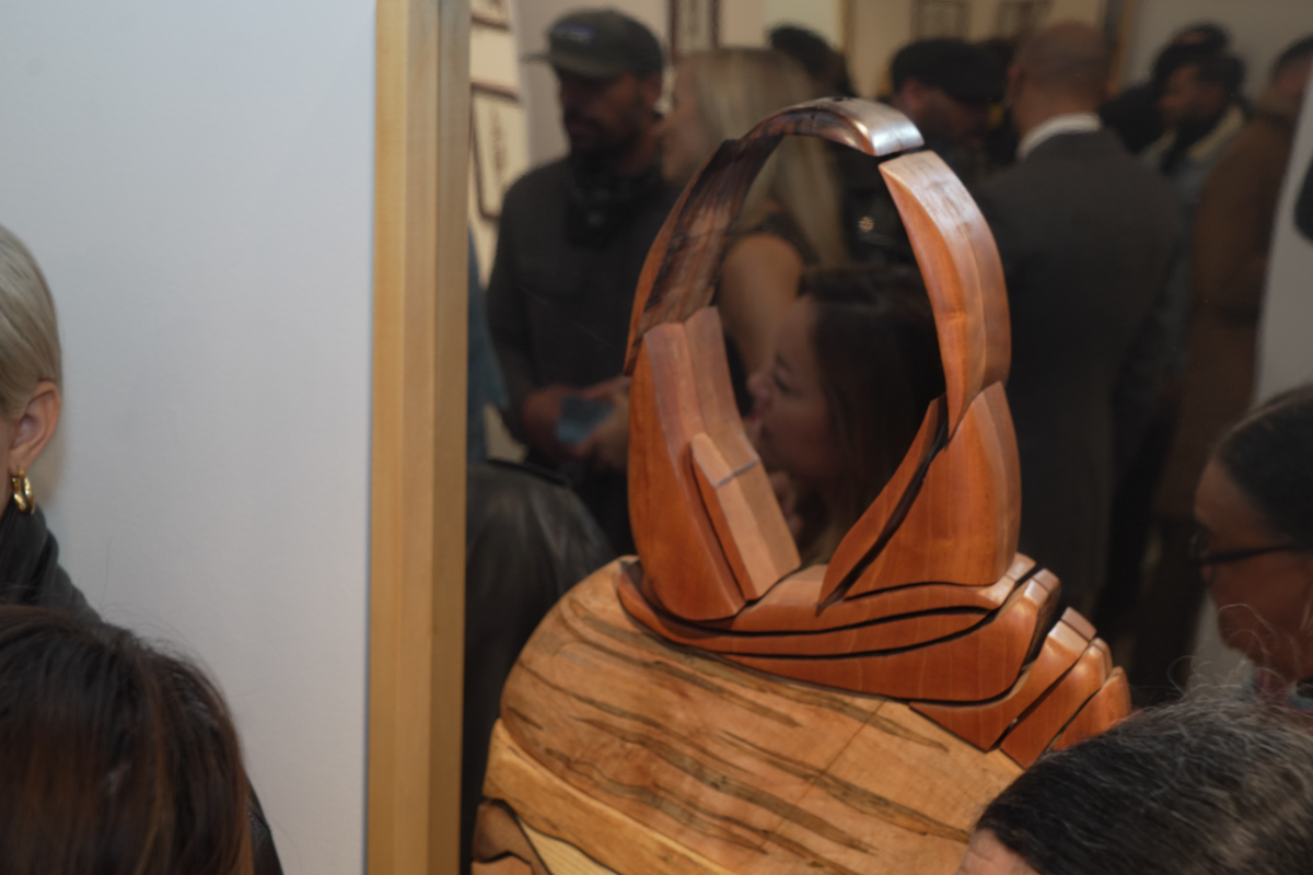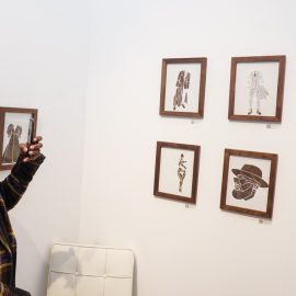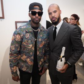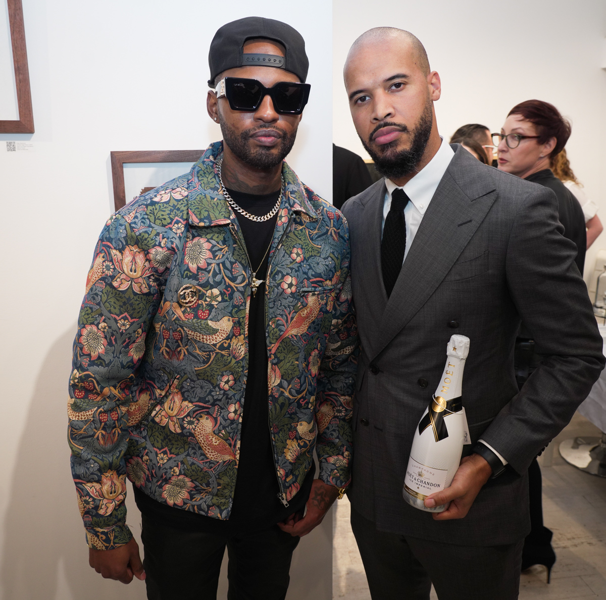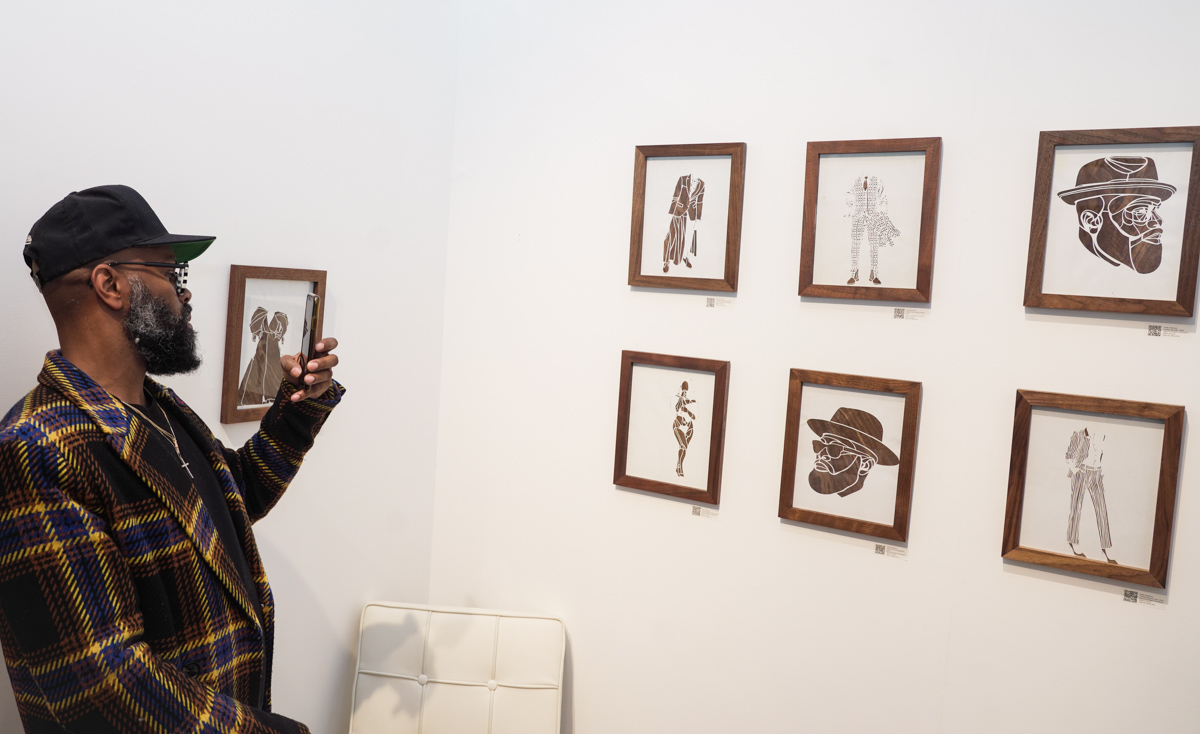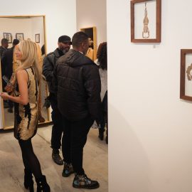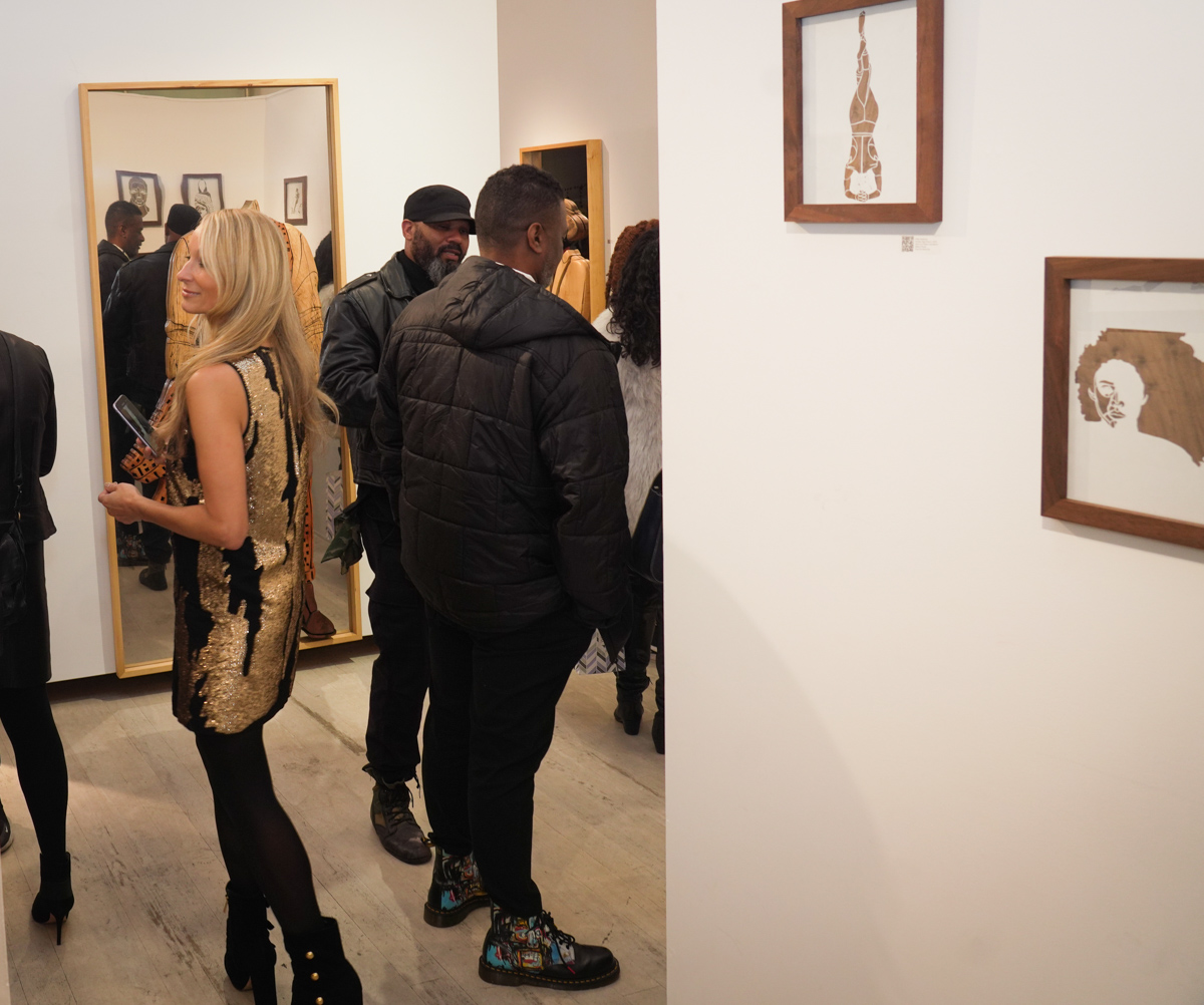 Guests sipped champagne and while enjoying the exhibit curated by Untitled’s founder Indira Cesarine. A soundtrack hand-picked by Robinson played in the background featuring the tracks that inspired the titles of artworks. Philip went as far as disclosing that music was another important element of inspiration for the works as well as, “TV, Print, Film, History Books, social media, Educational Institutions…Life experiences.” The exhibition also included a behind-the-scenes video of Philip while making his artwork that allowed people to view his works from a more personal perspective.