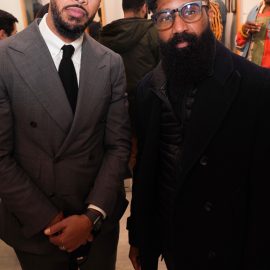 Philip A. Roobinson Jr. and George Myrie at the Philip A. Robinson Jr. "Old Talks with New Icons" Exhibit Opening Reception, November 20, 2021, The Untitled Space, Tribeca, NY
