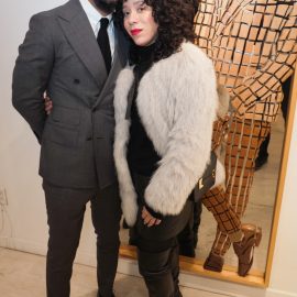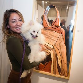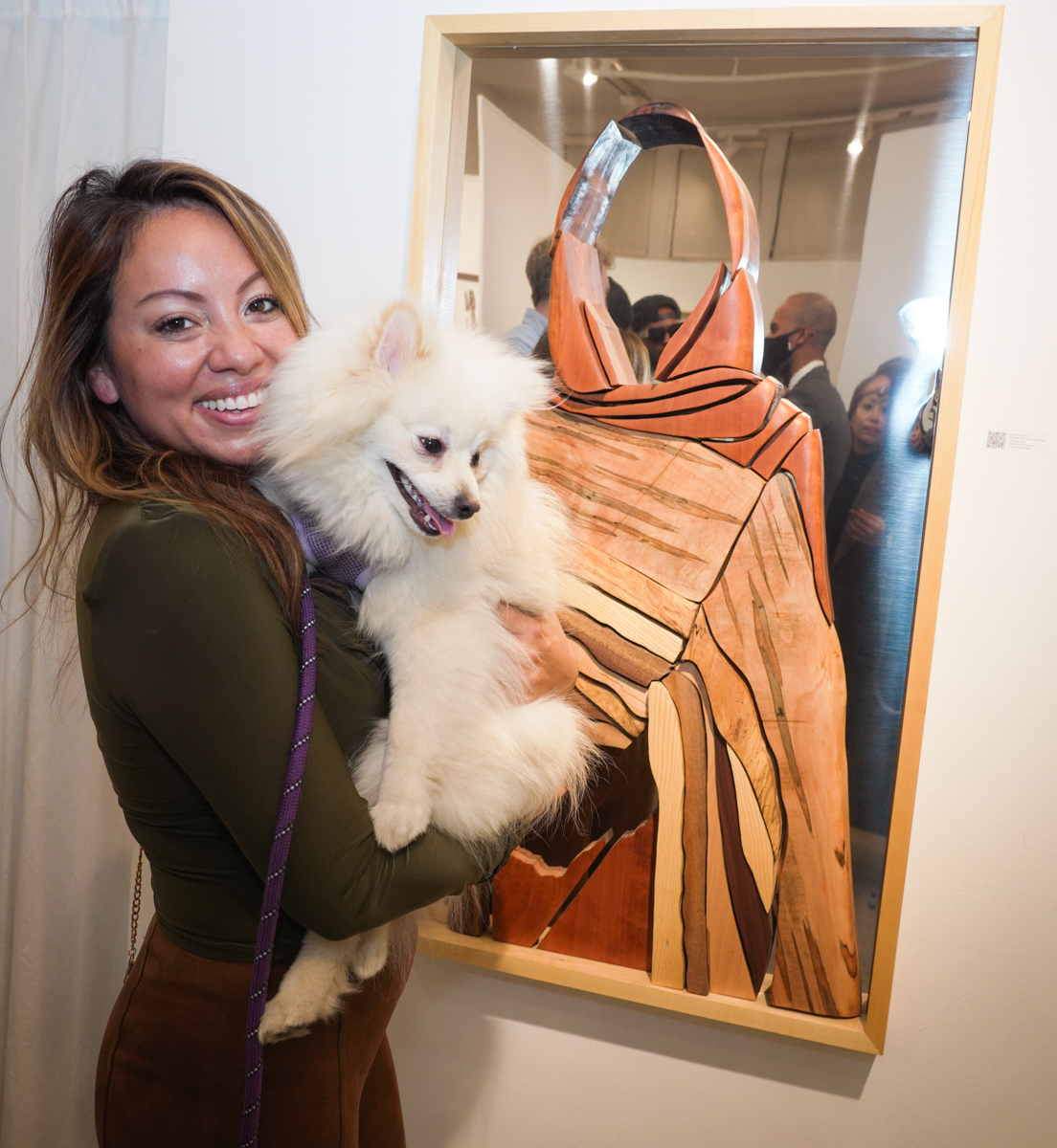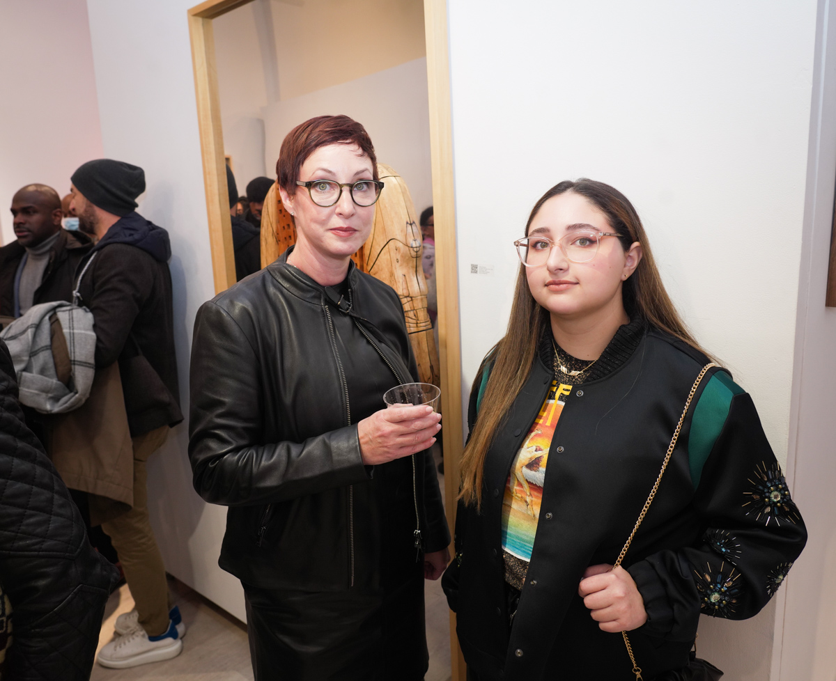 Molly Jane Garza with Echo Romeo Pom at Philip A. Robinson Jr. "Old Talks with New Icons" Exhibit Opening Reception, November 20, 2021, The Untitled Space, Tribeca, NY