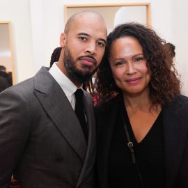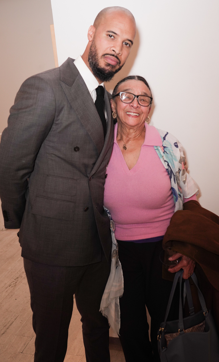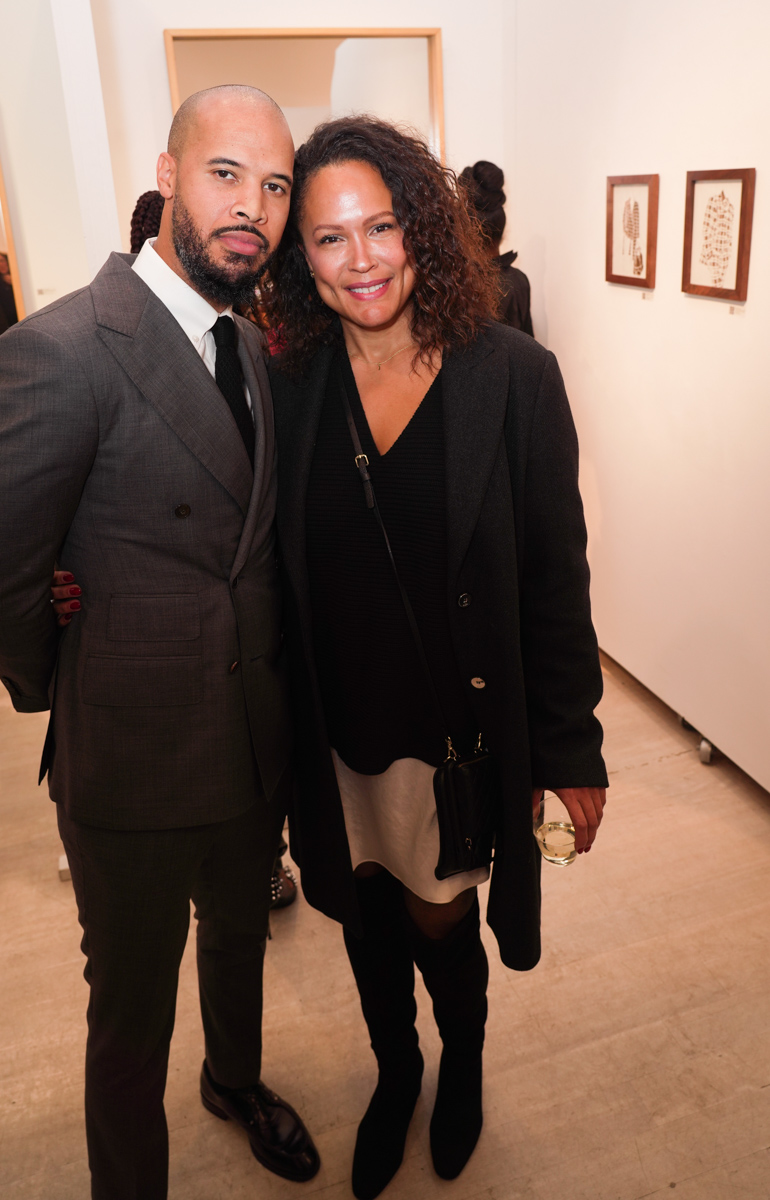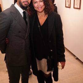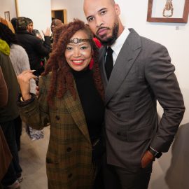 Watson Mere and guest at the Philip A. Robinson Jr. "Old Talks with New Icons" Exhibit Opening Reception, November 20, 2021, The Untitled Space, Tribeca, NY