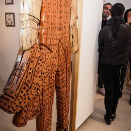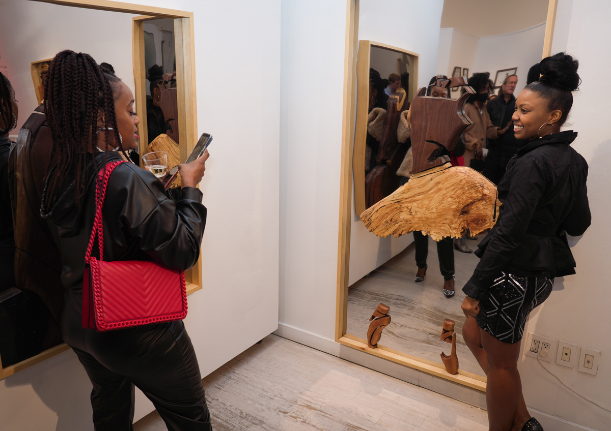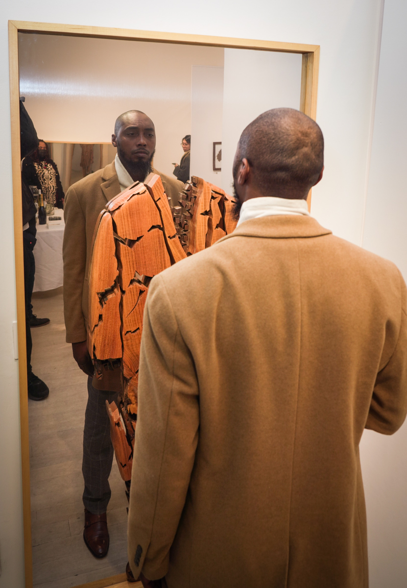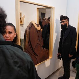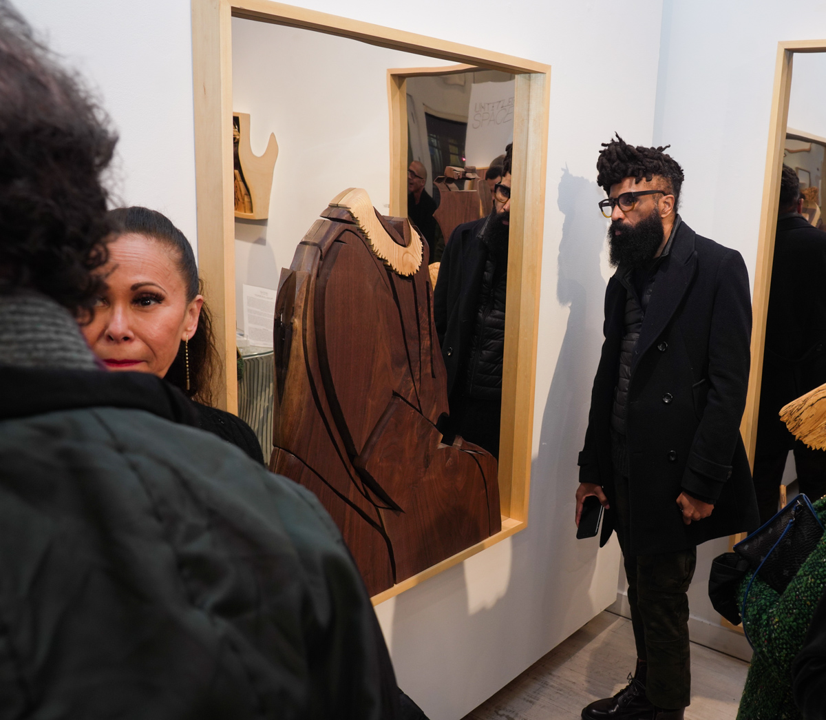 On November 20, The Untitled Space presented “Old Talks with New Icons,” a solo exhibition of works by artist Philip A. Robinson Jr. on display through December 17, 2021. “Old Talks with New Icons,” is a collection of life-sized figurative wood mixed media wall sculptures as well as a series of hand-cut works on paper by the award-winning multi-media sculptor and conceptual artist. Through a thoughtful selection of materials and the science of dendrochronology – as a protocol for historic markers for environmental changes through time – Robinson’s work accentuates aesthetic and historic patterns between self and the world, with socio-political undertones.