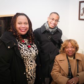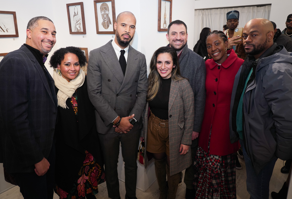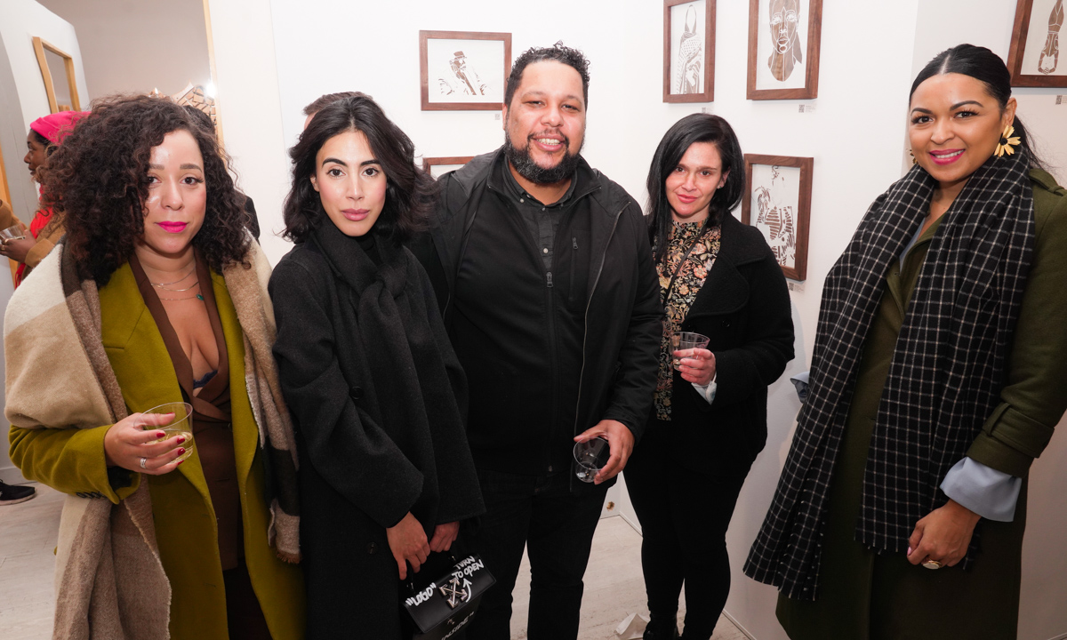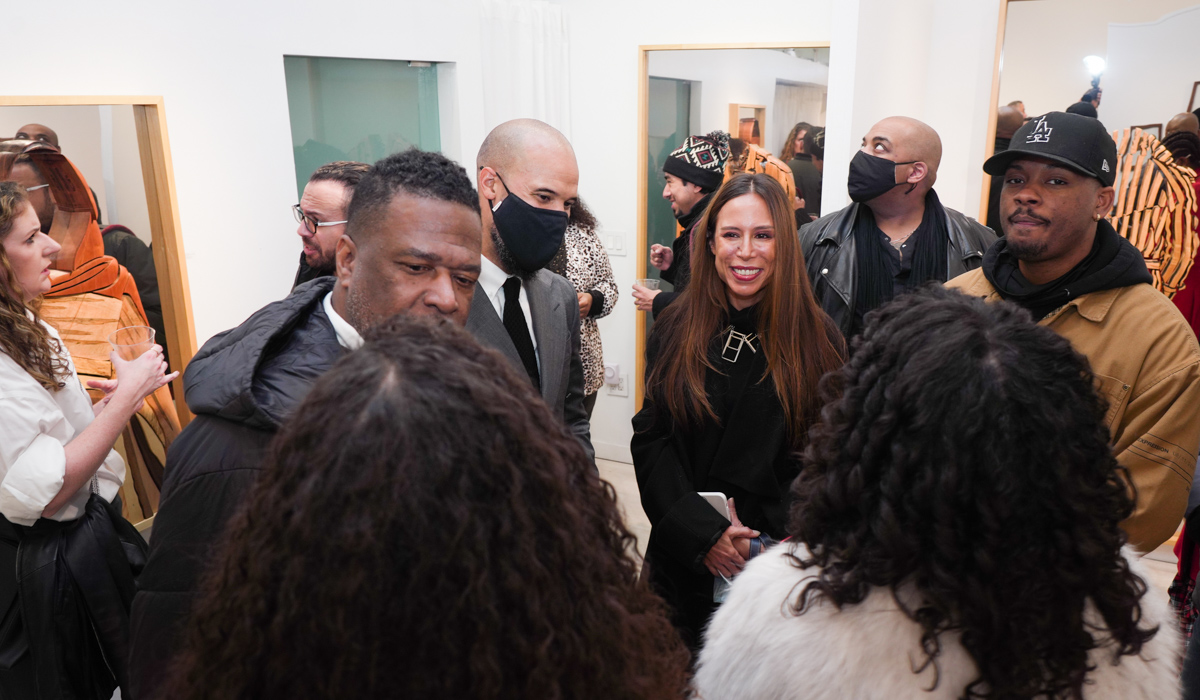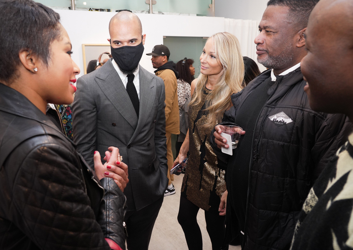 Watson Mere and guests at the Philip A. Robinson Jr. "Old Talks with New Icons" Exhibit Opening Reception, November 20, 2021, The Untitled Space, Tribeca, NY