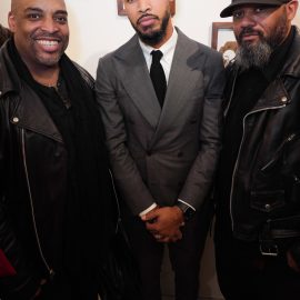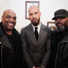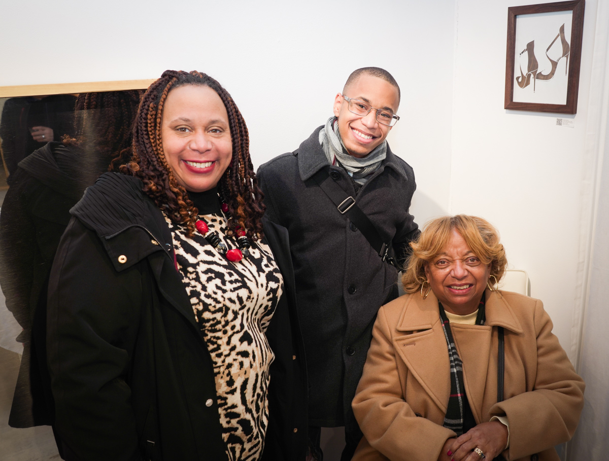 Oliver Smiles, Indira Cesarine and Tony Marx at the Philip A. Robinson Jr. "Old Talks with New Icons" Exhibit Opening Reception, November 20, 2021, The Untitled Space, Tribeca, NY