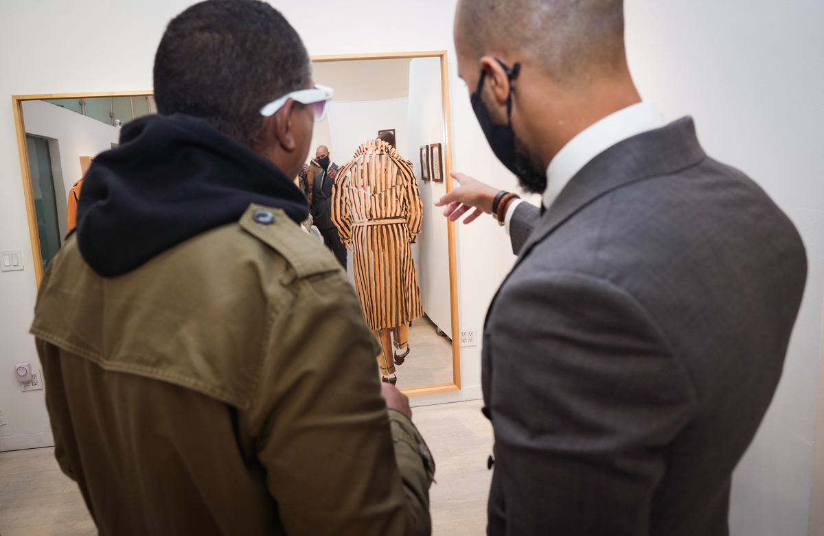 Kendal Henry at the Philip A. Robinson Jr. "Old Talks with New Icons" Exhibit Opening Reception, November 20, 2021, The Untitled Space, Tribeca, NY