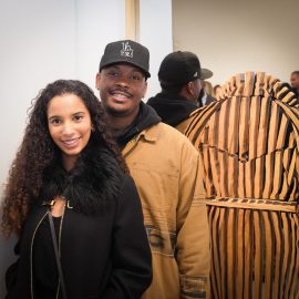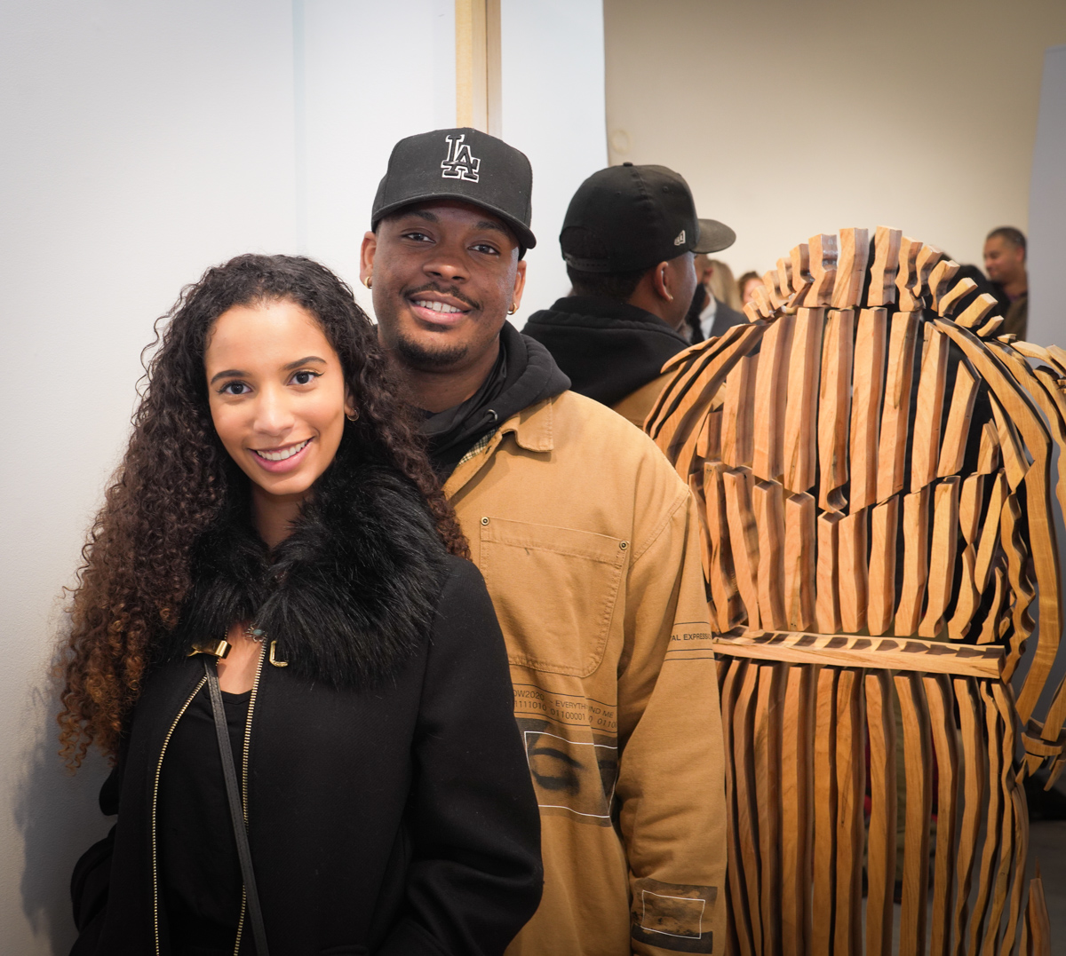 Philip A. Robinson Jr. and Khia Nelson at the Philip A. Robinson Jr. "Old Talks with New Icons" Exhibit Opening Reception, November 20, 2021, The Untitled Space, Tribeca, NY