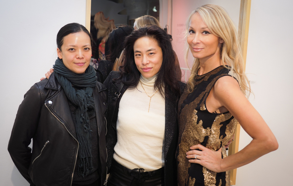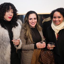Indira Cesarine, Jina Song and guest at the Philip A. Robinson Jr. "Old Talks with New Icons" Exhibit Opening Reception, November 20, 2021, The Untitled Space, Tribeca, NY