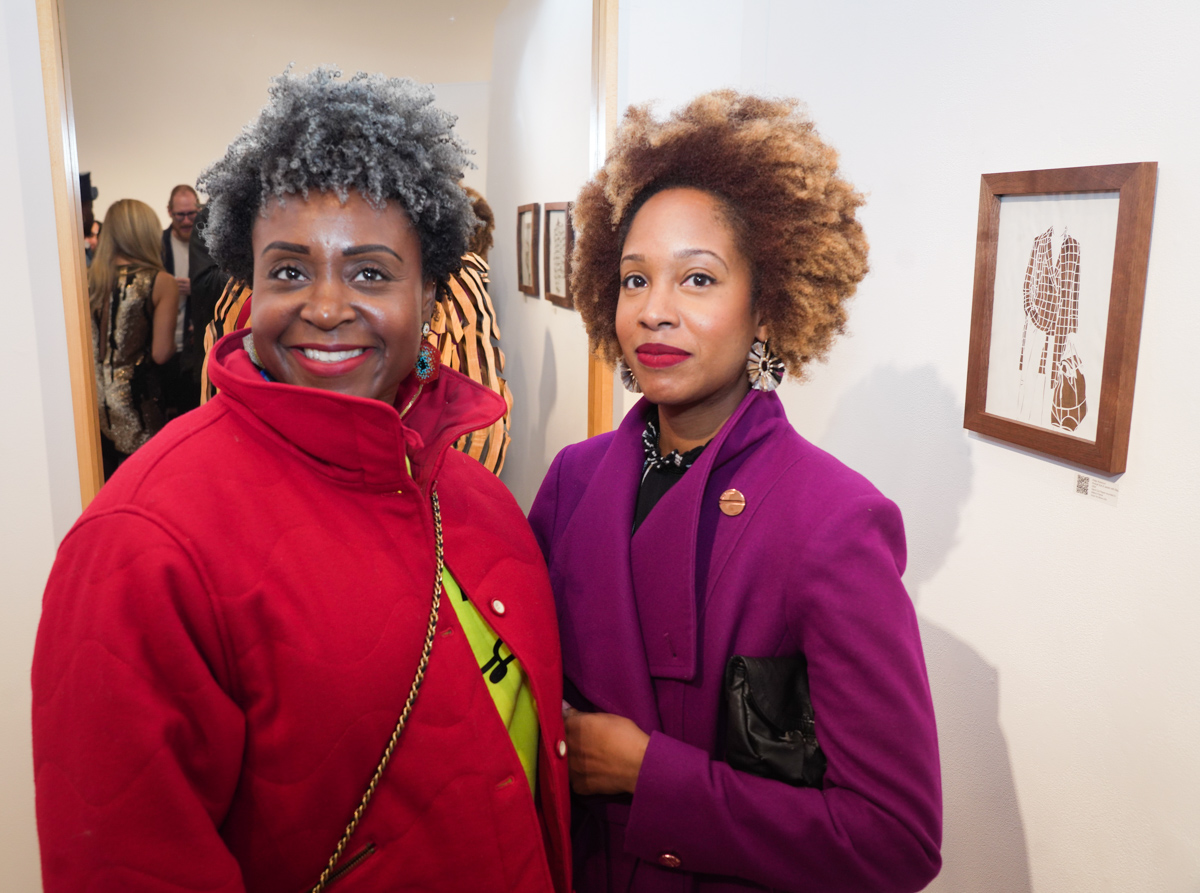 Molly Jane Garza and Kristen Walker at the Philip A. Robinson Jr. "Old Talks with New Icons" Exhibit Opening Reception, November 20, 2021, The Untitled Space, Tribeca, NY