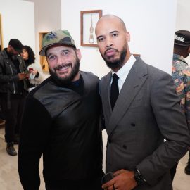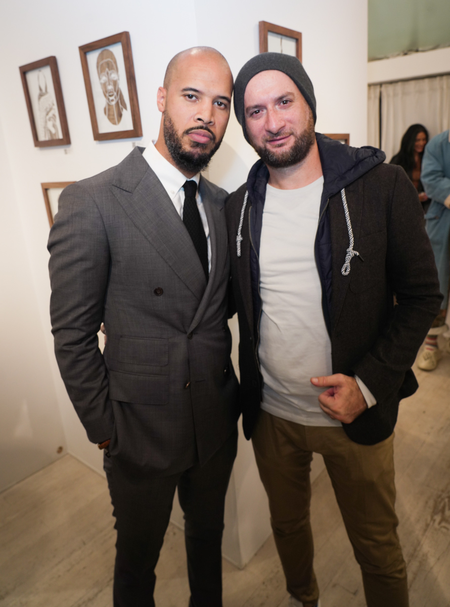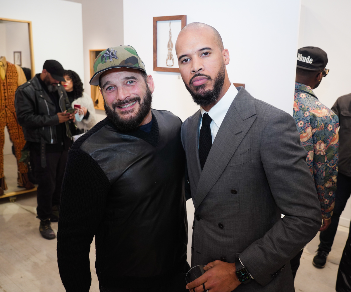 Phillip Bloch and Philip A. Robinson Jr. at the Philip A. Robinson Jr. "Old Talks with New Icons" Exhibit Opening Reception, November 20, 2021, The Untitled Space, Tribeca, NY