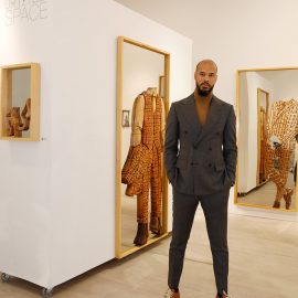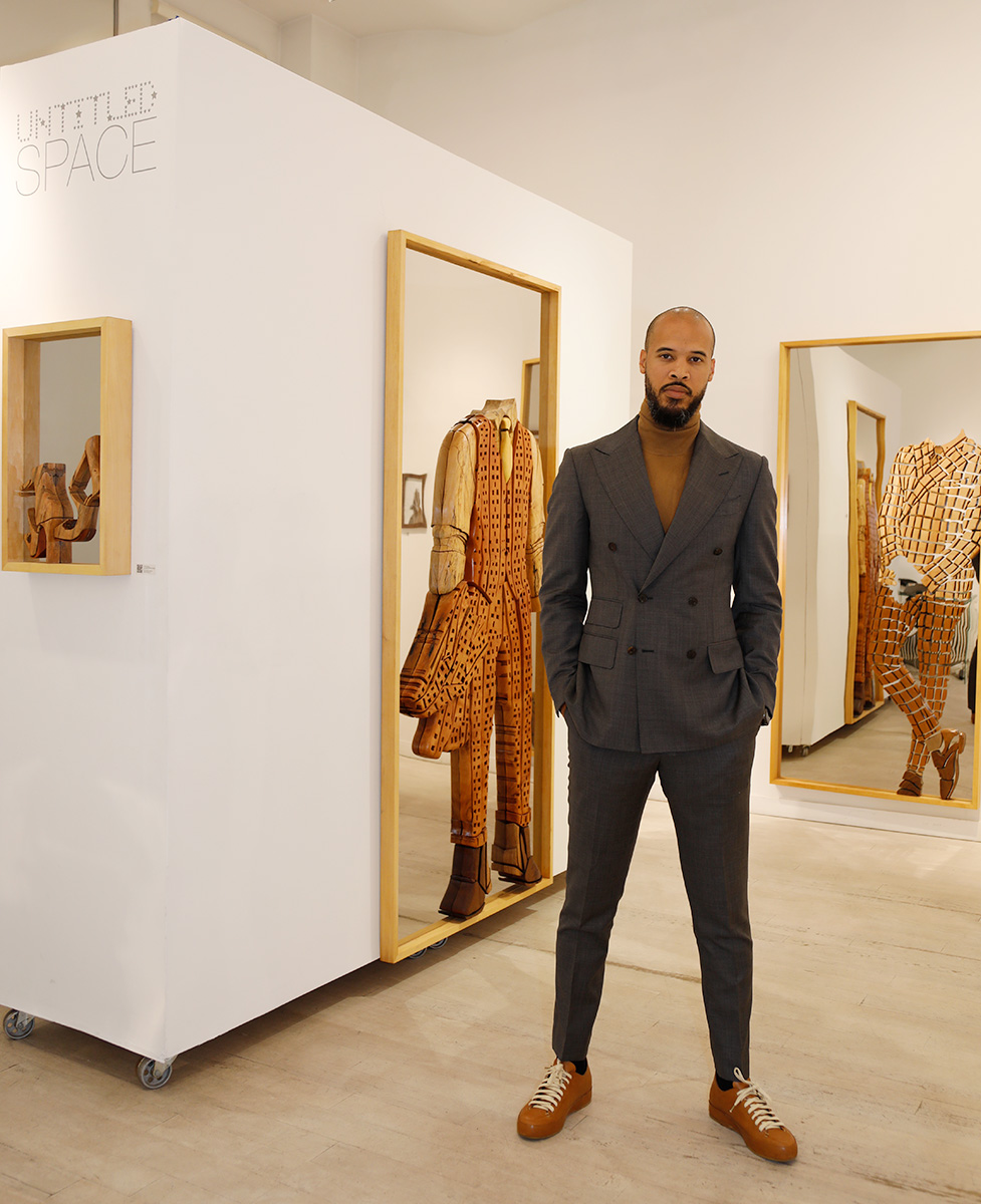 Philip A. Robinson Jr. with his exhibition “Old Talks with New Icons” at The Untitled Space