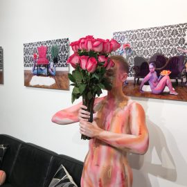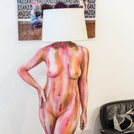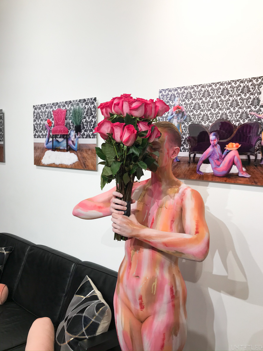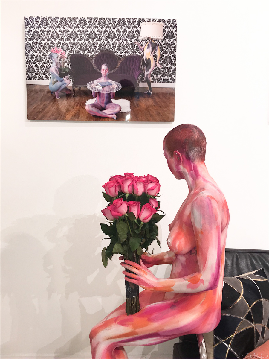 Artist statement on “Objectified” Exhibit and Performance: “Do the living spaces that surround us own us, or do we own them? My Objectified series poses these questions and allows viewers to come up with answers by creating a conversation within the self. What is all this stuff in my living space, and why do I choose these material items? There seems to be a sort of cohesive relationship built between animate and inanimate objects in the home. We want to entice you to explore four powerful examples of common living spaces that will come alive through human models fashioned with body paint.