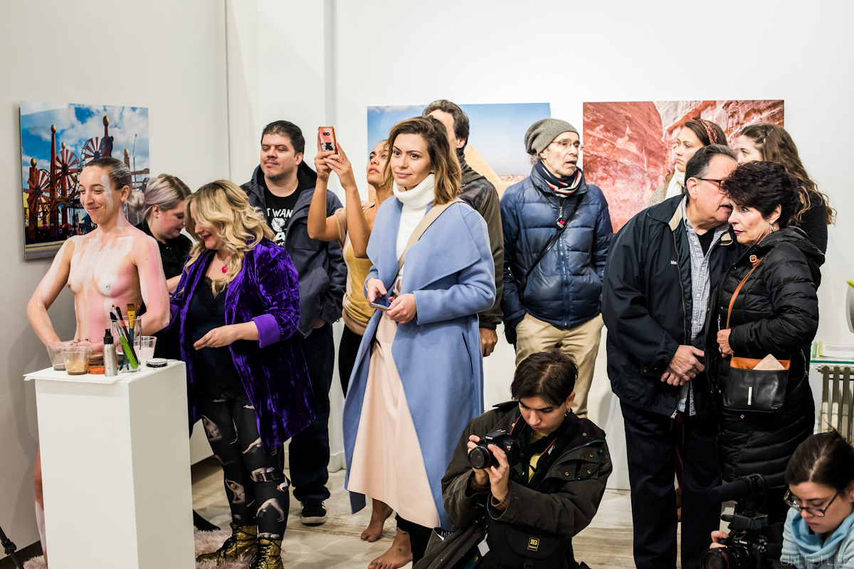 Opening of "Objectified" Trina Merry performance and exhibition, The Untitled Space Gallery, New York. Photography by Mikhail Torich