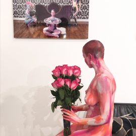 About 14 years ago, I was accused by a conservative friend of objectifying women in my artwork. Since I collaborate with consenting (often enthusiastic) models & performers, I laughed and thought I’d delve deeper into the phrase “Objectified” and the domestic expectations that were being placed on me, questioning consumerism and identity. Now, at nearly 40 and having grown past many of these societal pressures, I revisit this series within the context of our current political climate to examine the historical female nude within the context of art history, issues of consent, laws that remove the freedom of choice women have over their own bodies, and social media censorship.”