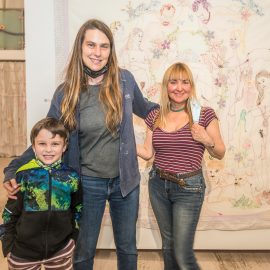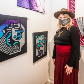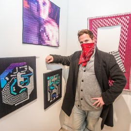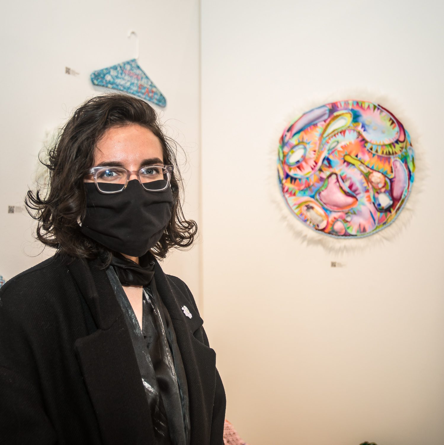 Artist Katie Cercone at the opening reception for “UNRAVELED: Confronting The Fabric of Fiber Art” Group Show, The Untitled Space gallery, New York