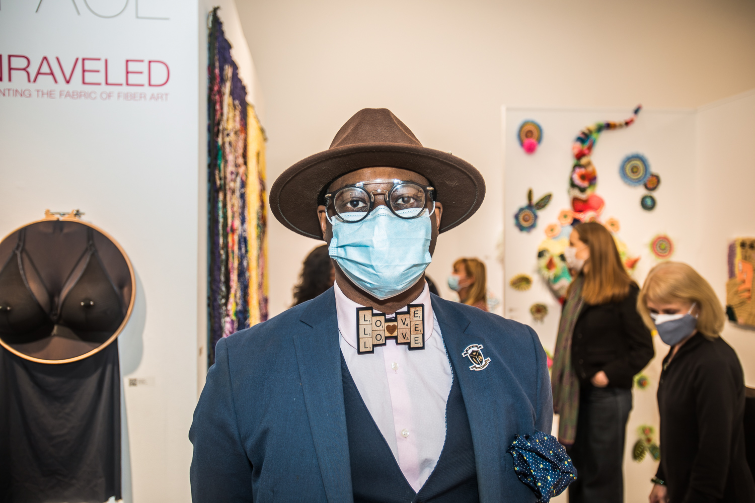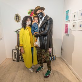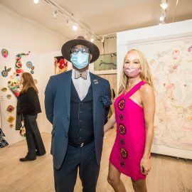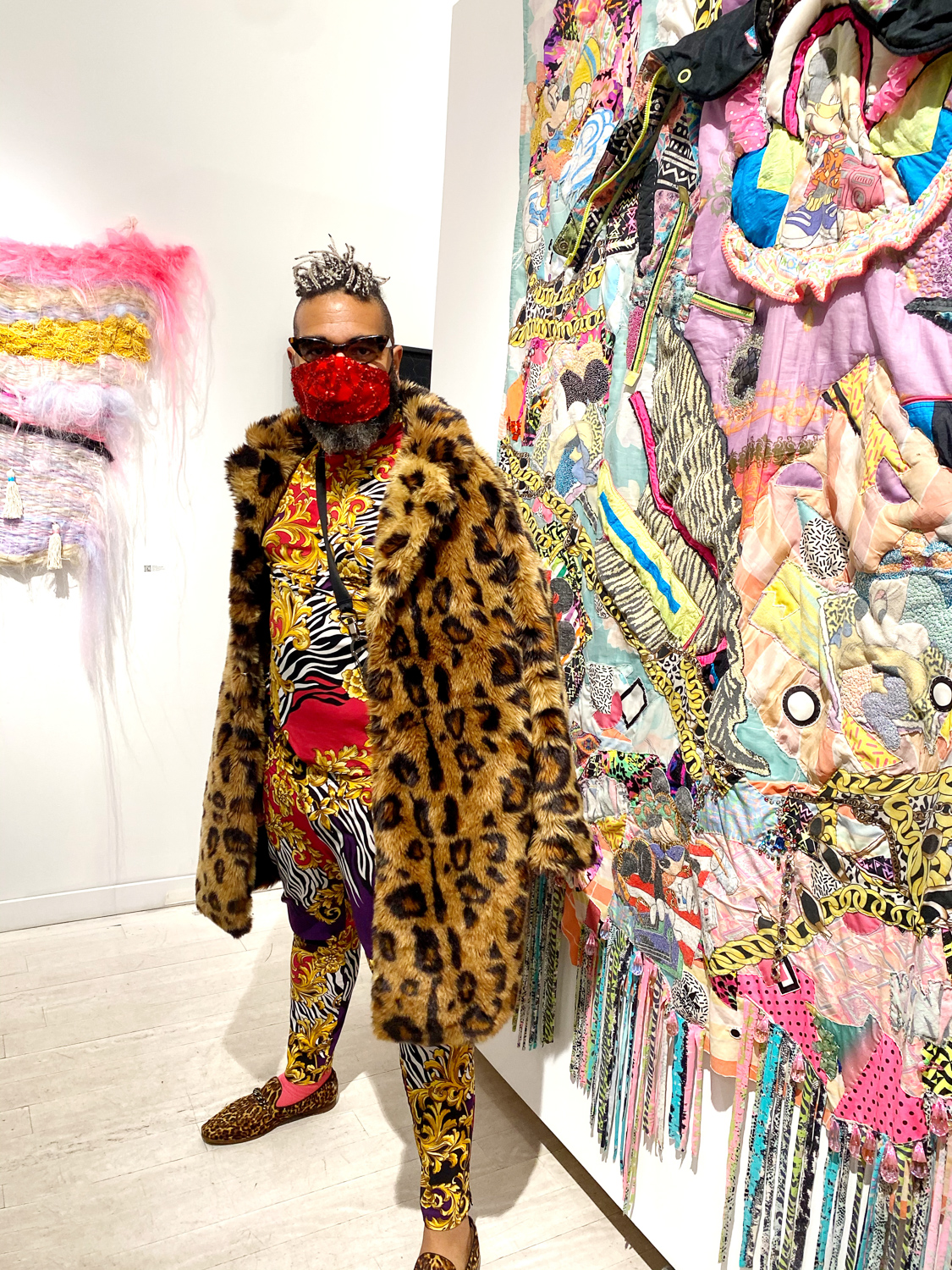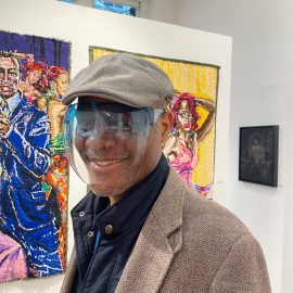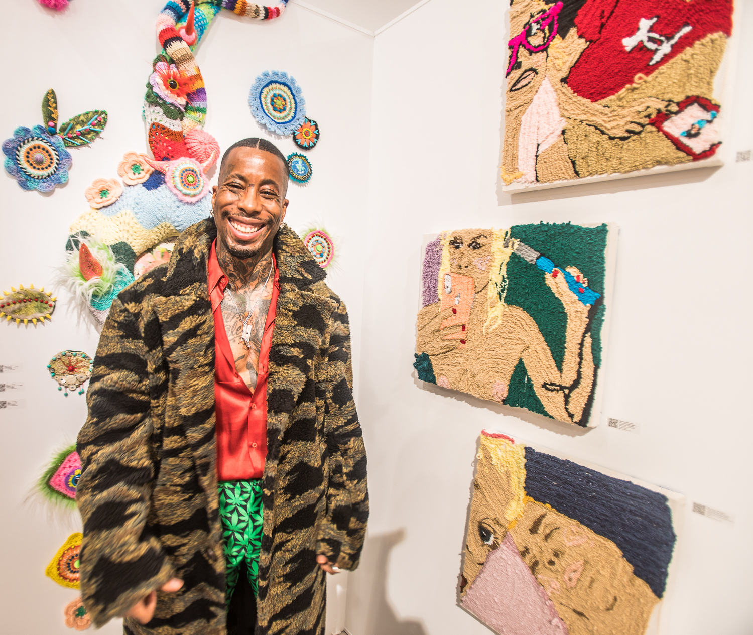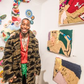 John Nubian attends "UNRAVELED: Confronting The Fabric of Fiber Art" Group Show, The Untitled Space gallery, New York