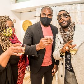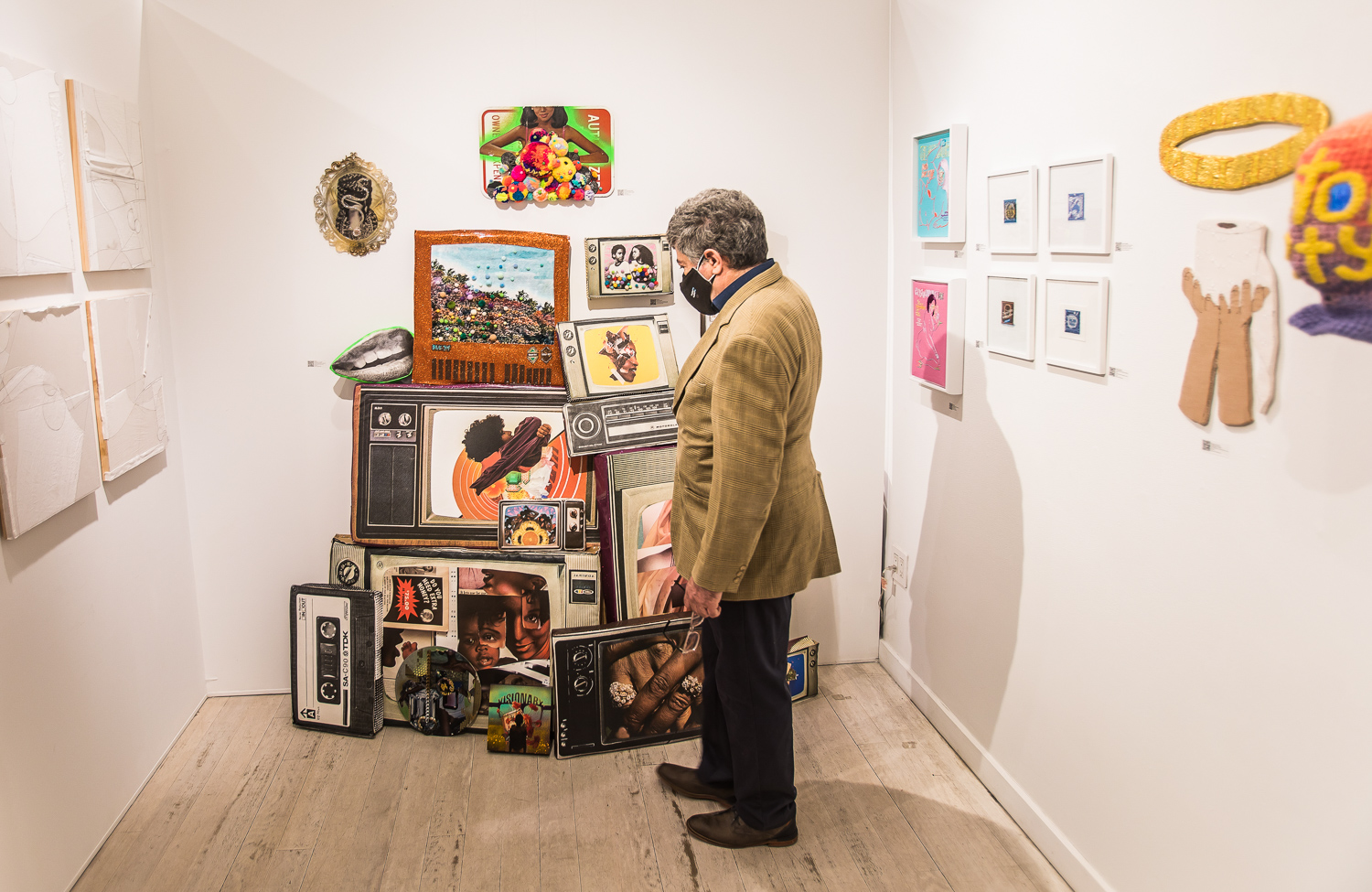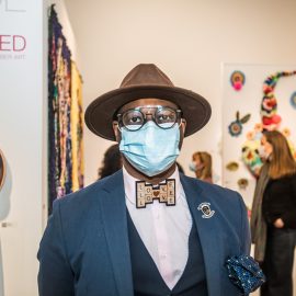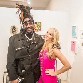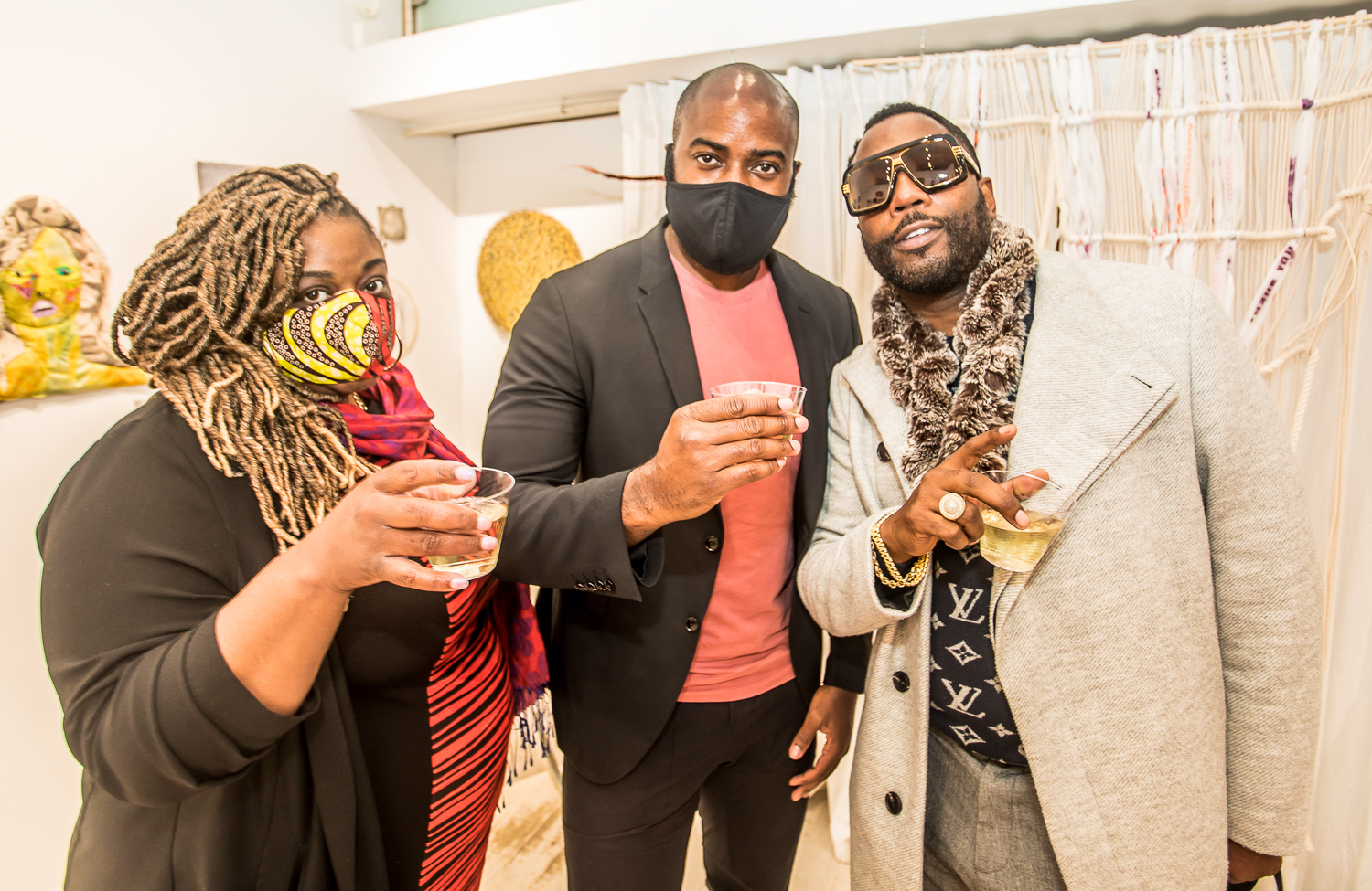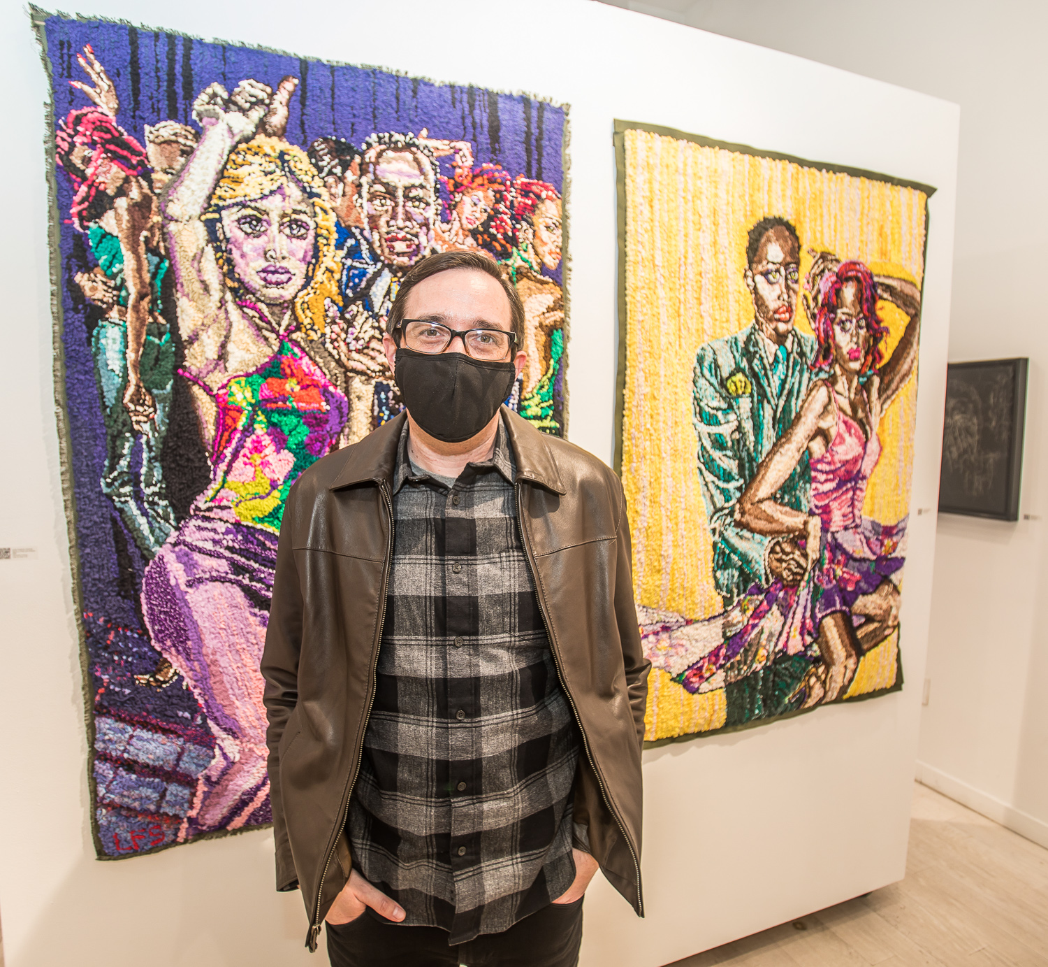 John Nubian attends "UNRAVELED: Confronting The Fabric of Fiber Art" Group Show, The Untitled Space gallery, New York