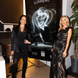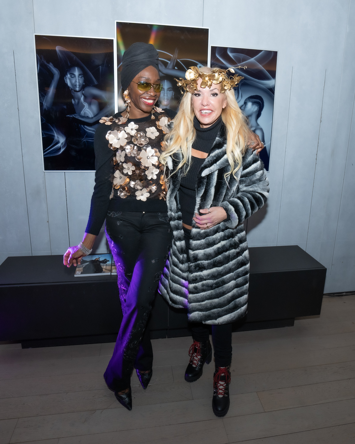 Deborah Bernard and Indira Cesarine attend Indira Cesarine Lumiere Solo Exhibition and Genesis NFT Drop at The Canvas 3.0 Gallery at Oculus World Trade Center New York, NY on January 31, 2024. (Photo by David Warren /Sipa USA)