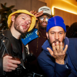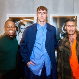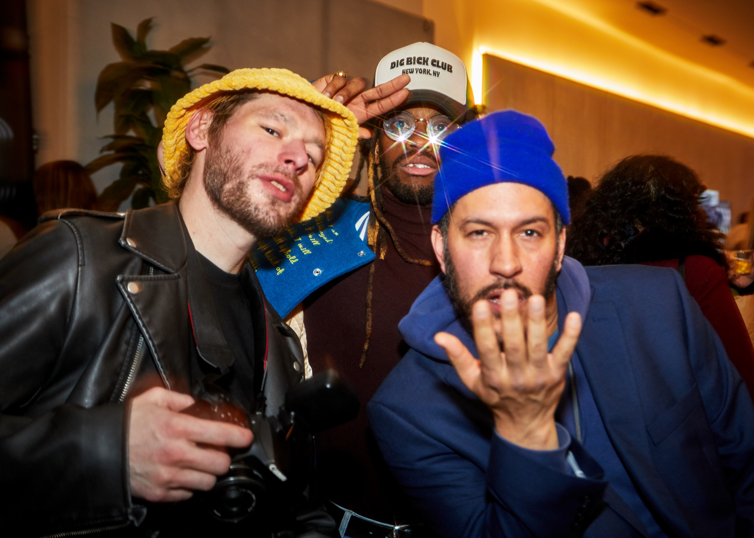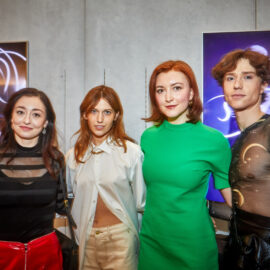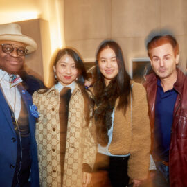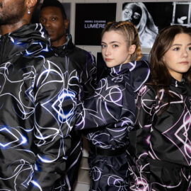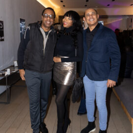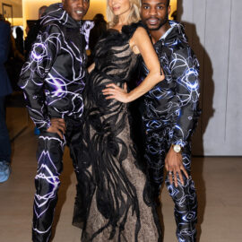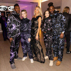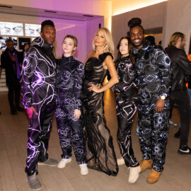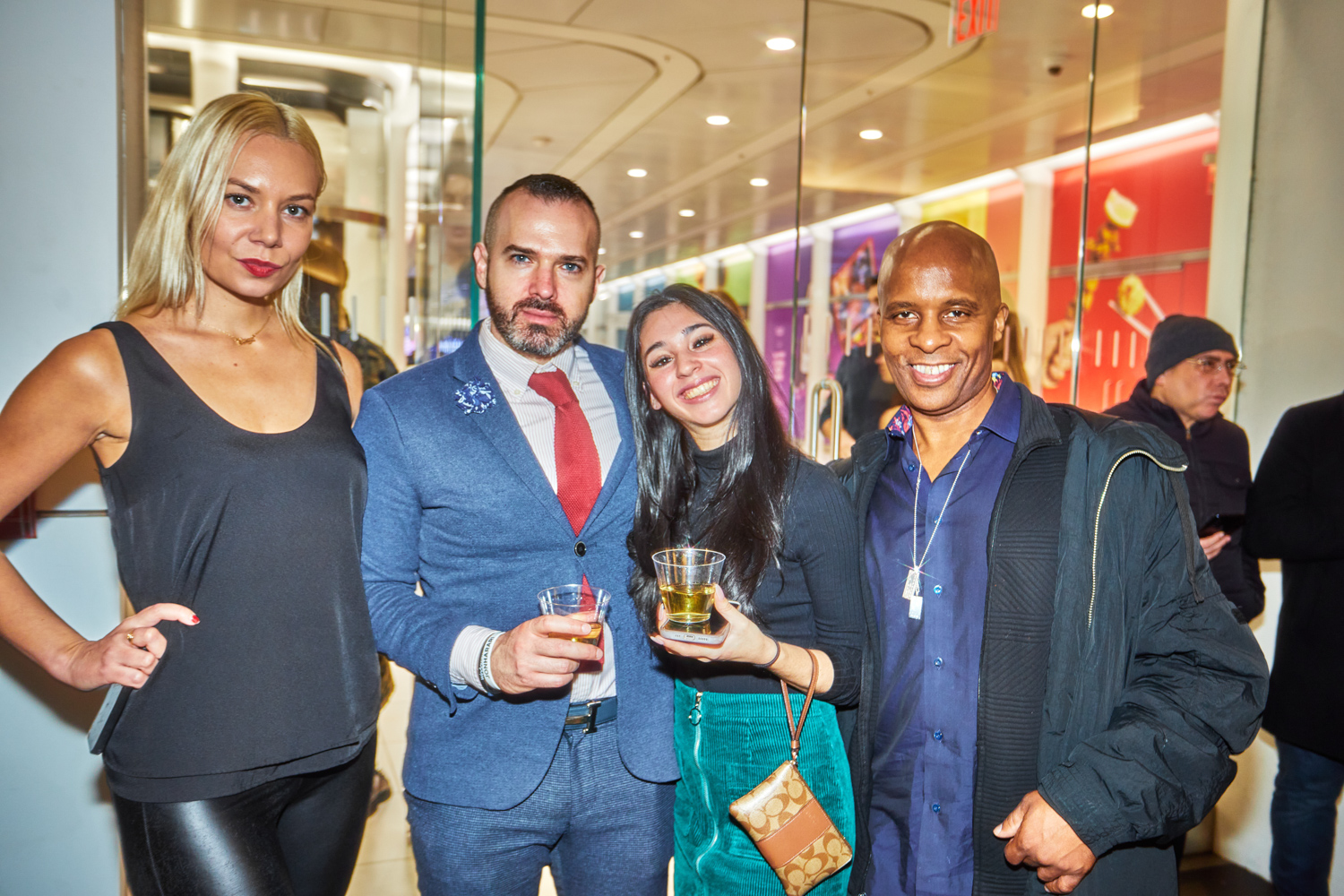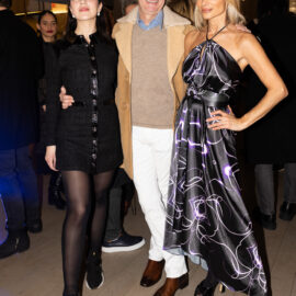 Marina Dojchinov, Benjamin Adams, Erin Zalan, attends Indira Cesarine Lumiere Solo Exhibition and Genesis NFT Drop at The Canvas 3.0 Gallery at Oculus World Trade Center New York, NY on January 31, 2024. (Photo by David Warren /Sipa USA)