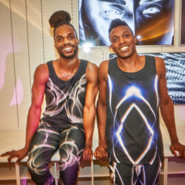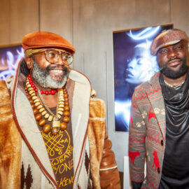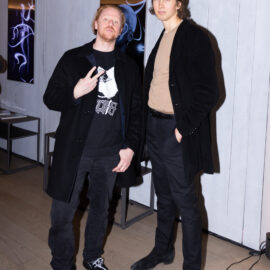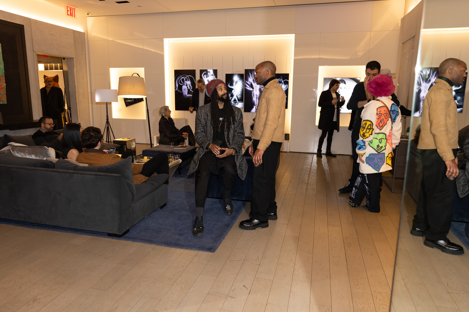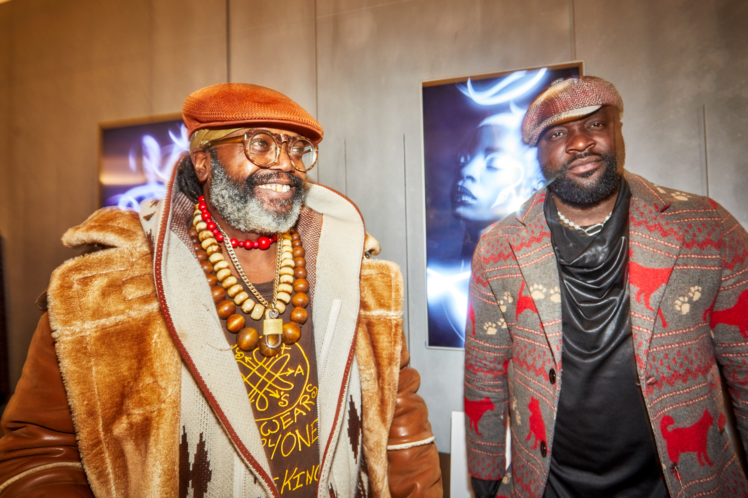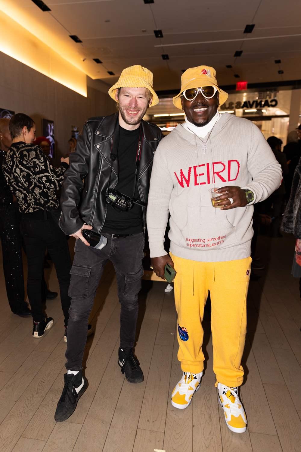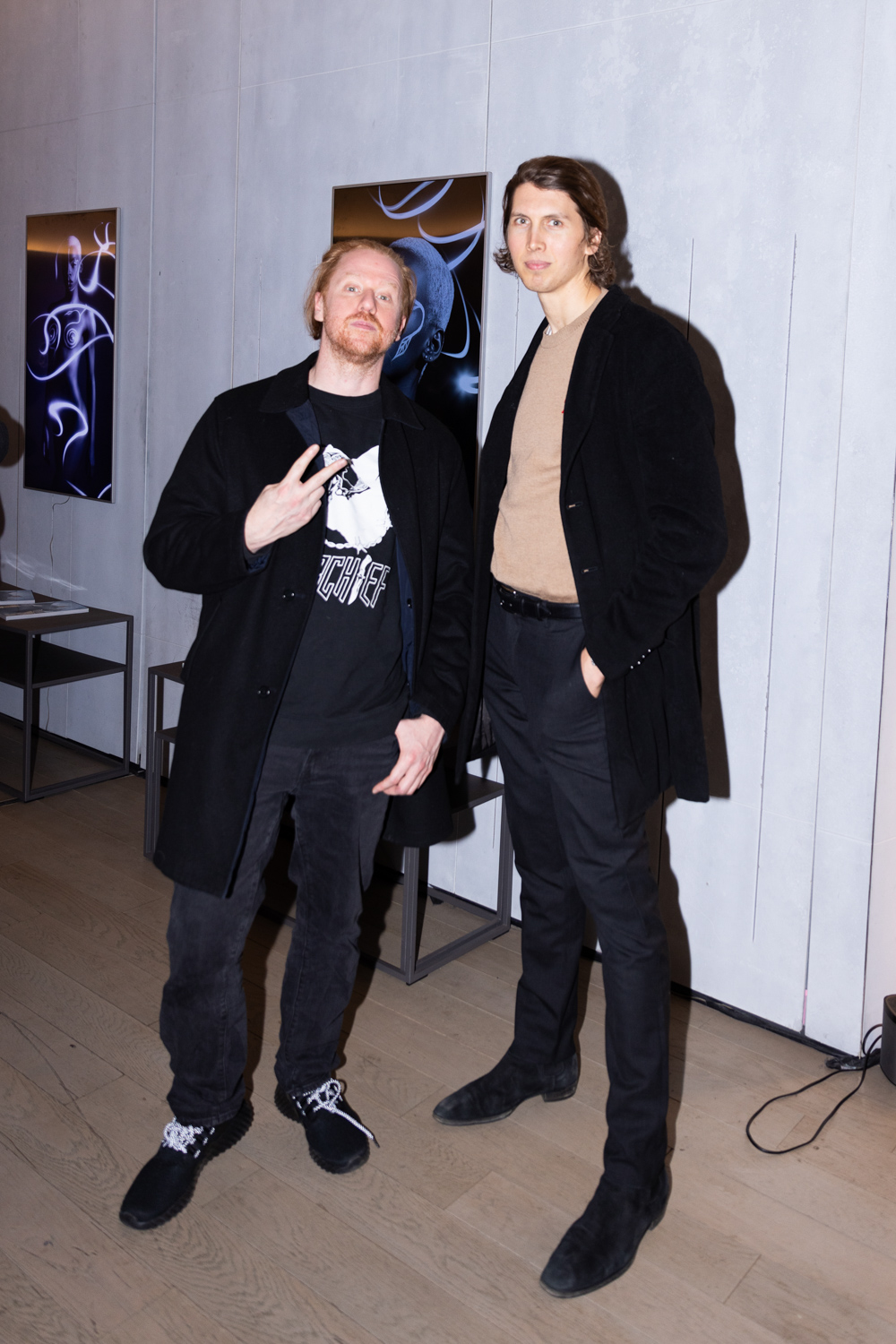 Ezequiel DelaRosa and Phillip Bloch attend Indira Cesarine Lumiere Solo Exhibition and Genesis NFT Drop at The Canvas 3.0 Gallery at Oculus World Trade Center New York, NY on January 31, 2024. (Photo by David Warren /Sipa USA)