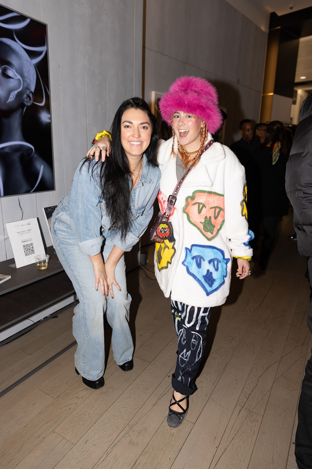 Jessica Marinaro and Indira Cesarine attend Indira Cesarine Lumiere Solo Exhibition and Genesis NFT Drop at The Canvas 3.0 Gallery at Oculus World Trade Center New York, NY on January 31, 2024. (Photo by David Warren /Sipa USA)