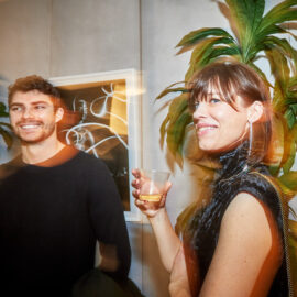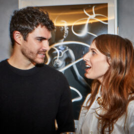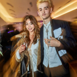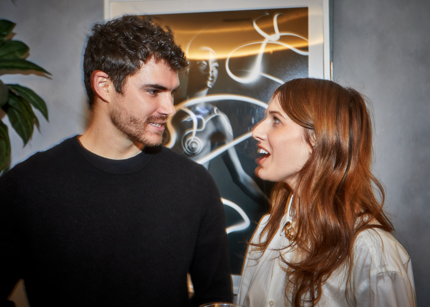 Luciana Pampalone and Ezequiel DelaRosa attend Indira Cesarine Lumiere Solo Exhibition and Genesis NFT Drop at The Canvas 3.0 Gallery at Oculus World Trade Center New York, NY on January 31, 2024. (Photo by David Warren /Sipa USA)