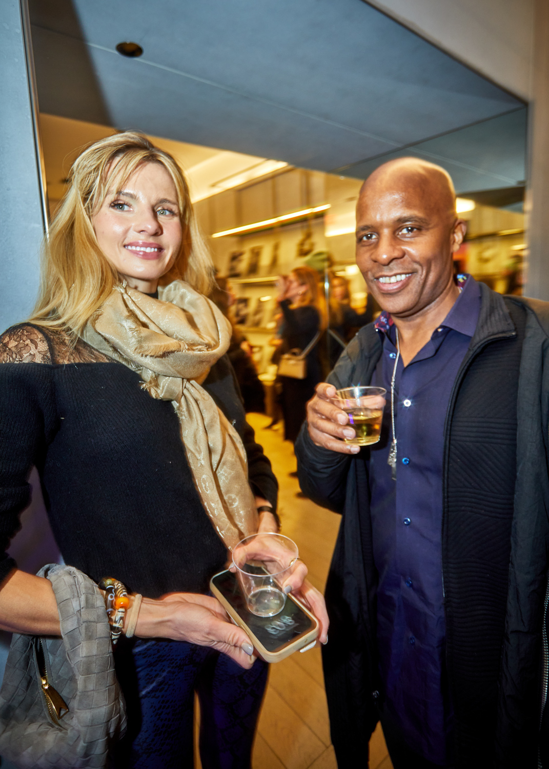 Tinu Naija and Luciana Pampalone attend Indira Cesarine Lumiere Solo Exhibition and Genesis NFT Drop at The Canvas 3.0 Gallery at Oculus World Trade Center New York, NY on January 31, 2024. (Photo by David Warren /Sipa USA)