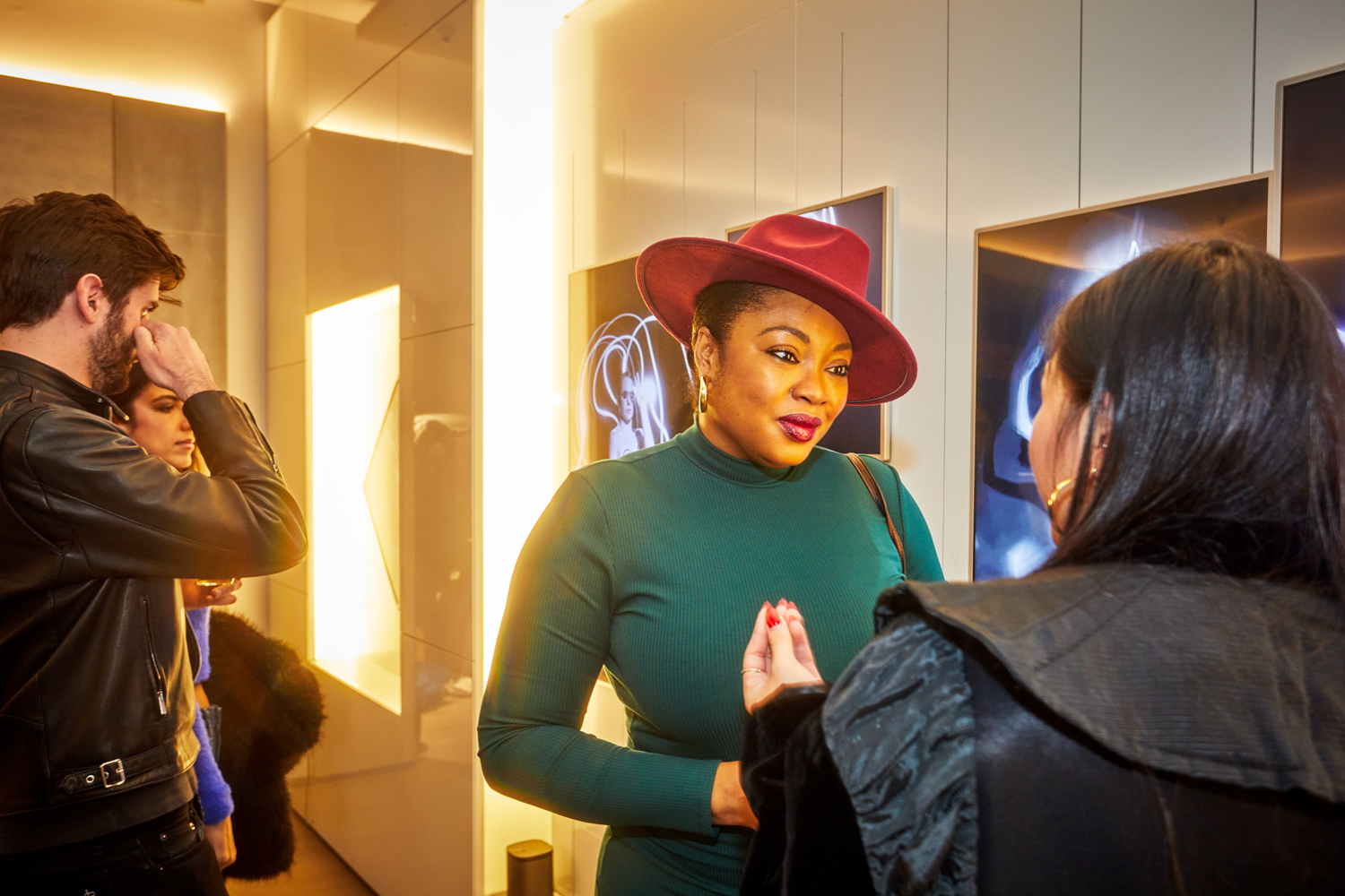 Danijela Spitzer, and Dani Ropi attend Indira Cesarine Lumiere Solo Exhibition and Genesis NFT Drop at The Canvas 3.0 Gallery at Oculus World Trade Center New York, NY on January 31, 2024. (Photo by David Warren /Sipa USA)
